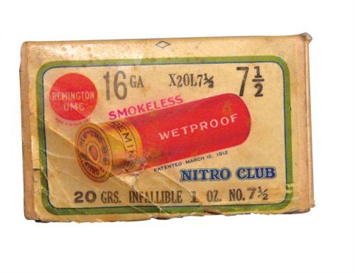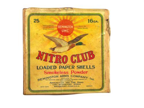 Two Piece Remington UMC Shot Shell Box for 16 gauge Nitro Club smokeless powder shells, empty. Very good condition, complete.