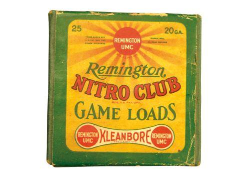 Two Piece Remington UMC Shot Shell Box for 12 gauge Nitro Club game loads, empty. Very good condition, complete.