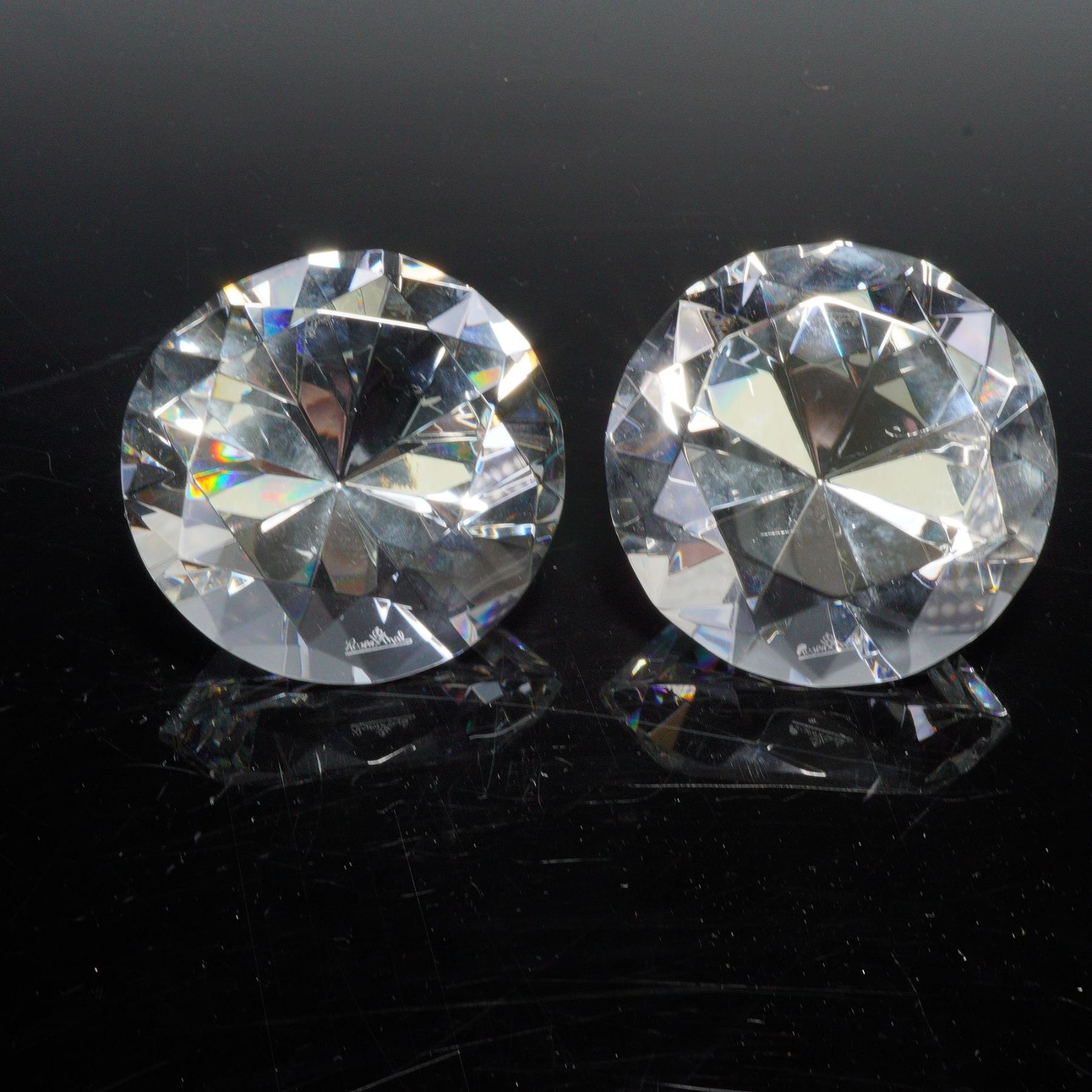 Two clear crystal diamond-form paperweights by Rosenthal. Each finely cut with multiple faceted planes producing prismatic reflection and depth. Both marked Rosenthal on the base.