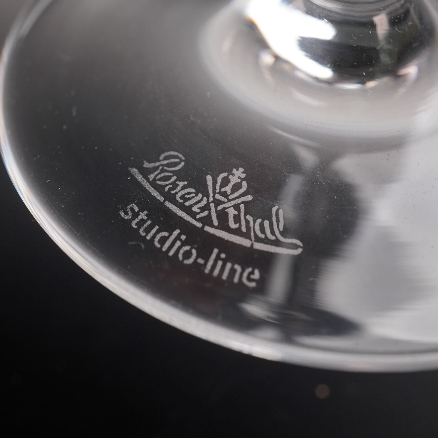 Offered here is a set of two Rosenthal Studio-Line Grand Cru crystal wine glasses. Designed with sleek, elongated bowls and slender stems, these glasses highlight Rosenthal's modernist craftsmanship while remaining functional for enjoying fine wines. Each piece is etched with the Rosenthal Studio-Line mark on the base. The set is accompanied by the original presentation box.