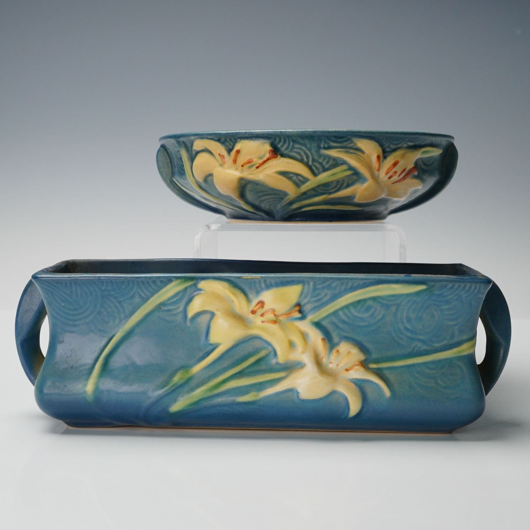 2pc Roseville Pottery Bowl and Planter, Zephyr Lily