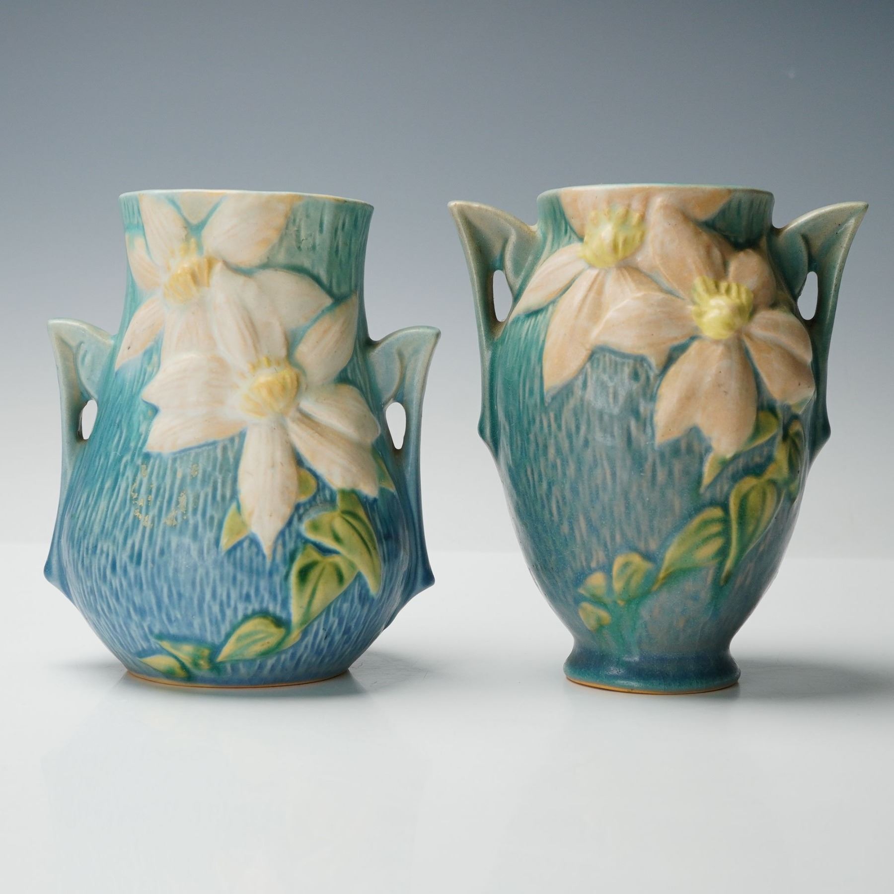 2pc Roseville Pottery Double-Handled Vases, Clematis