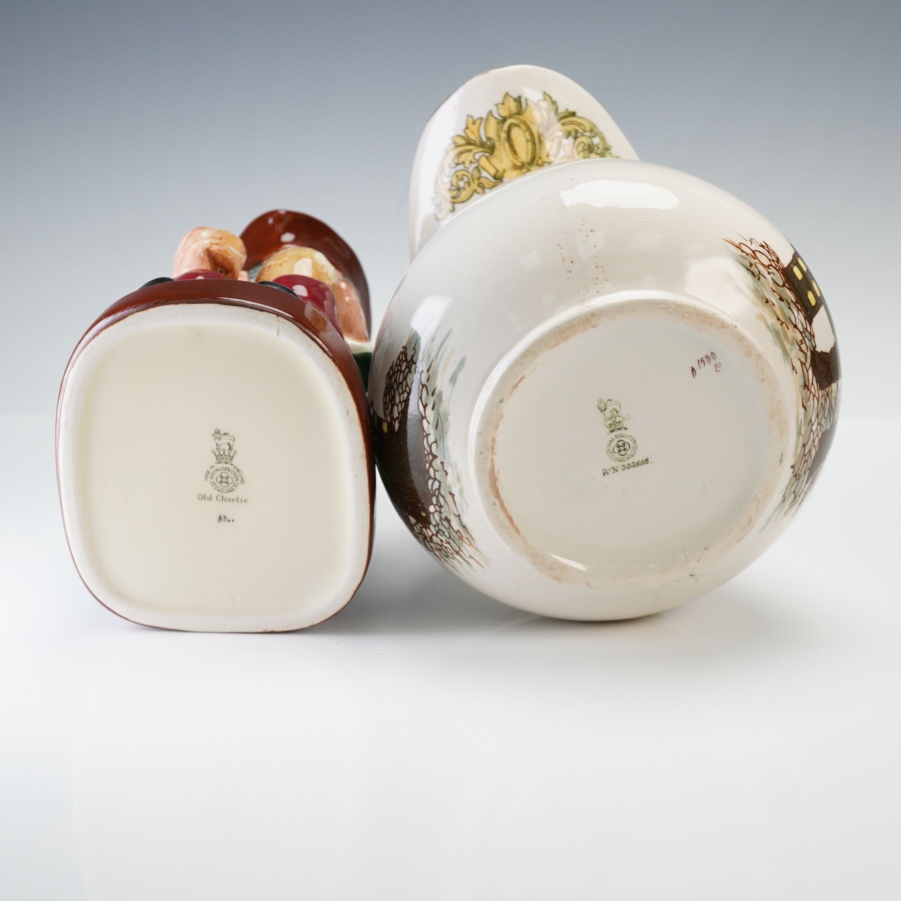 2pc Royal Doulton Large Toby Jug and Pitcher, Old Charlie and Watchman