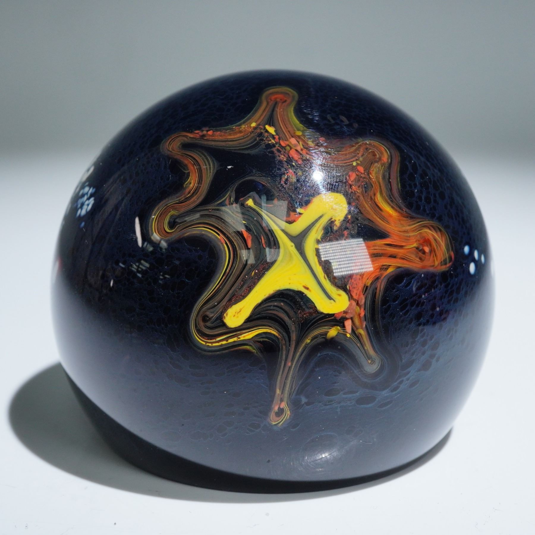 2pc Selkirk Glass Paperweights, Red Mirage (Ltd Ed) and Wizards Eye