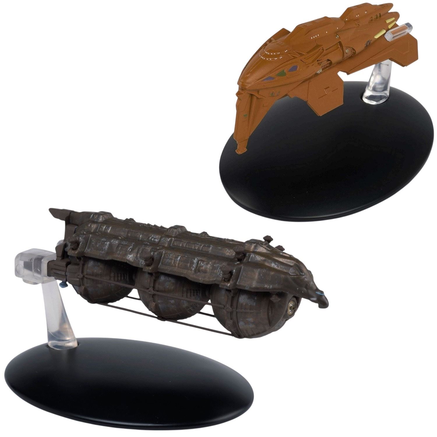 2pc Star Trek Starship Models - Malon Freighter 5484-A/D 2016 CBS Studio Inc. & Kazon Raider 3606-A/B (with base & stand)