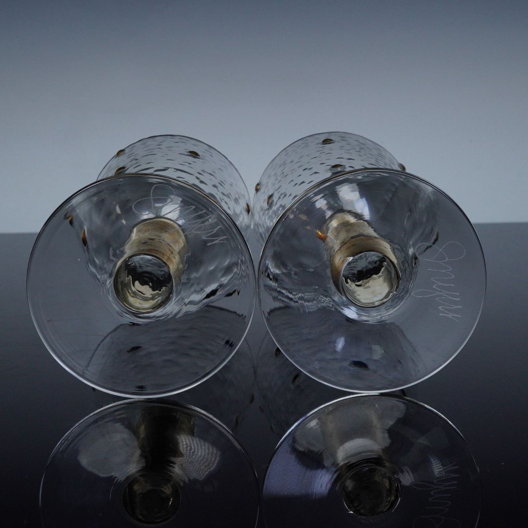 2pc Stephen Smyers Morocco Gold Dot Art Glass Goblets, Signed
