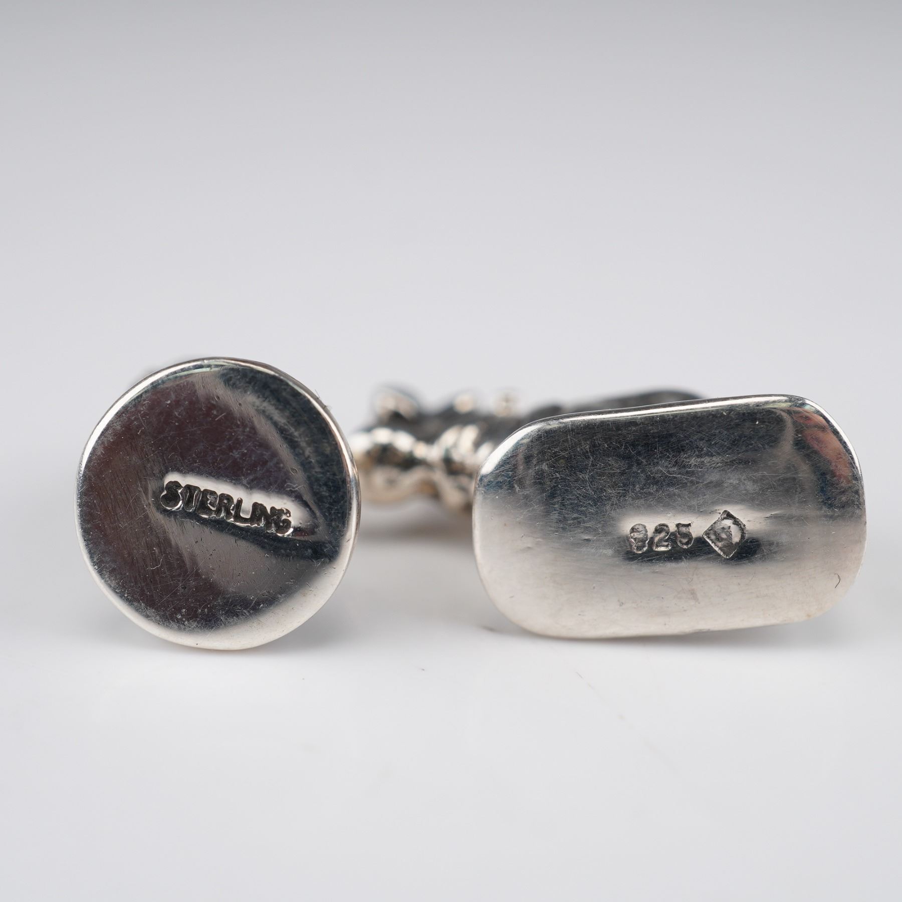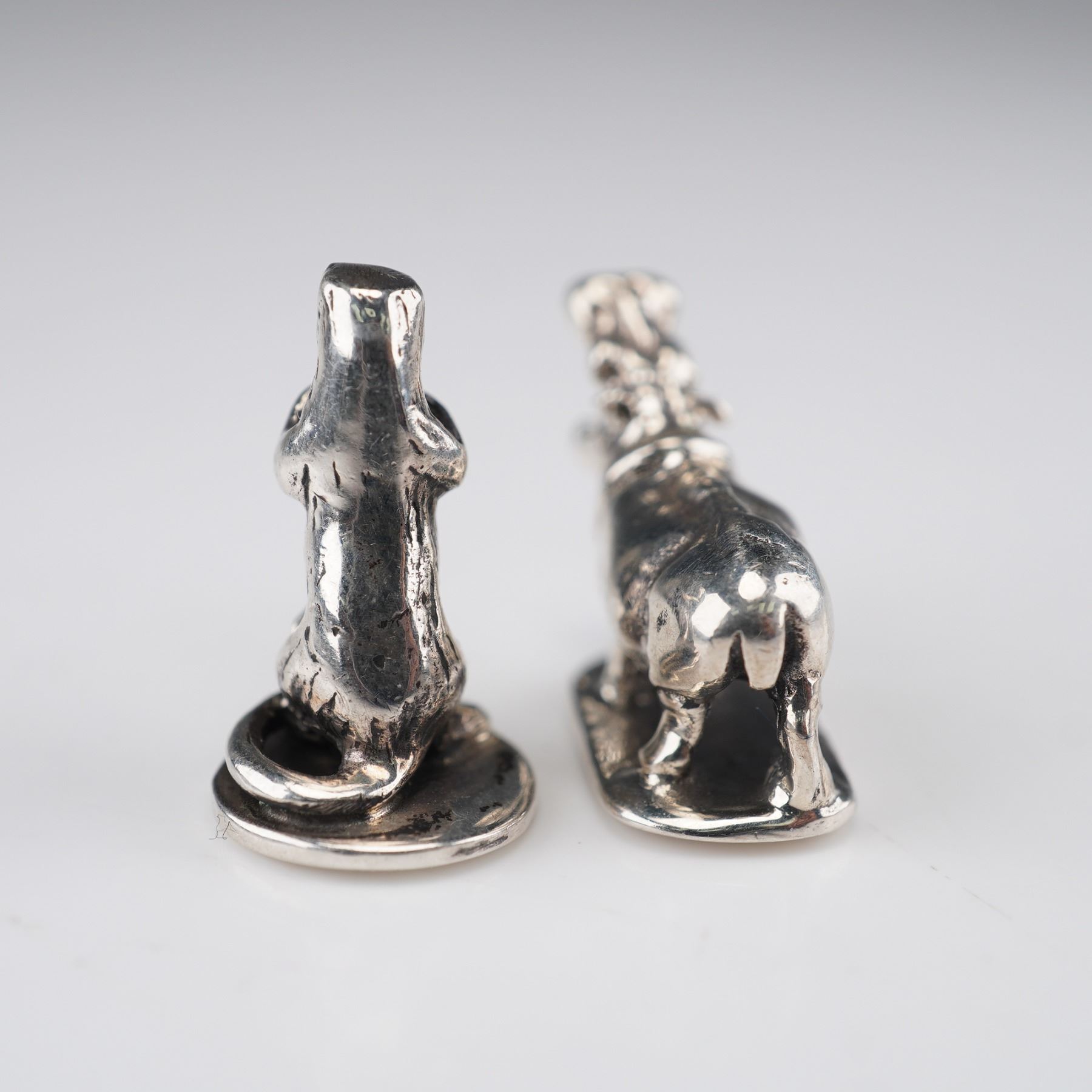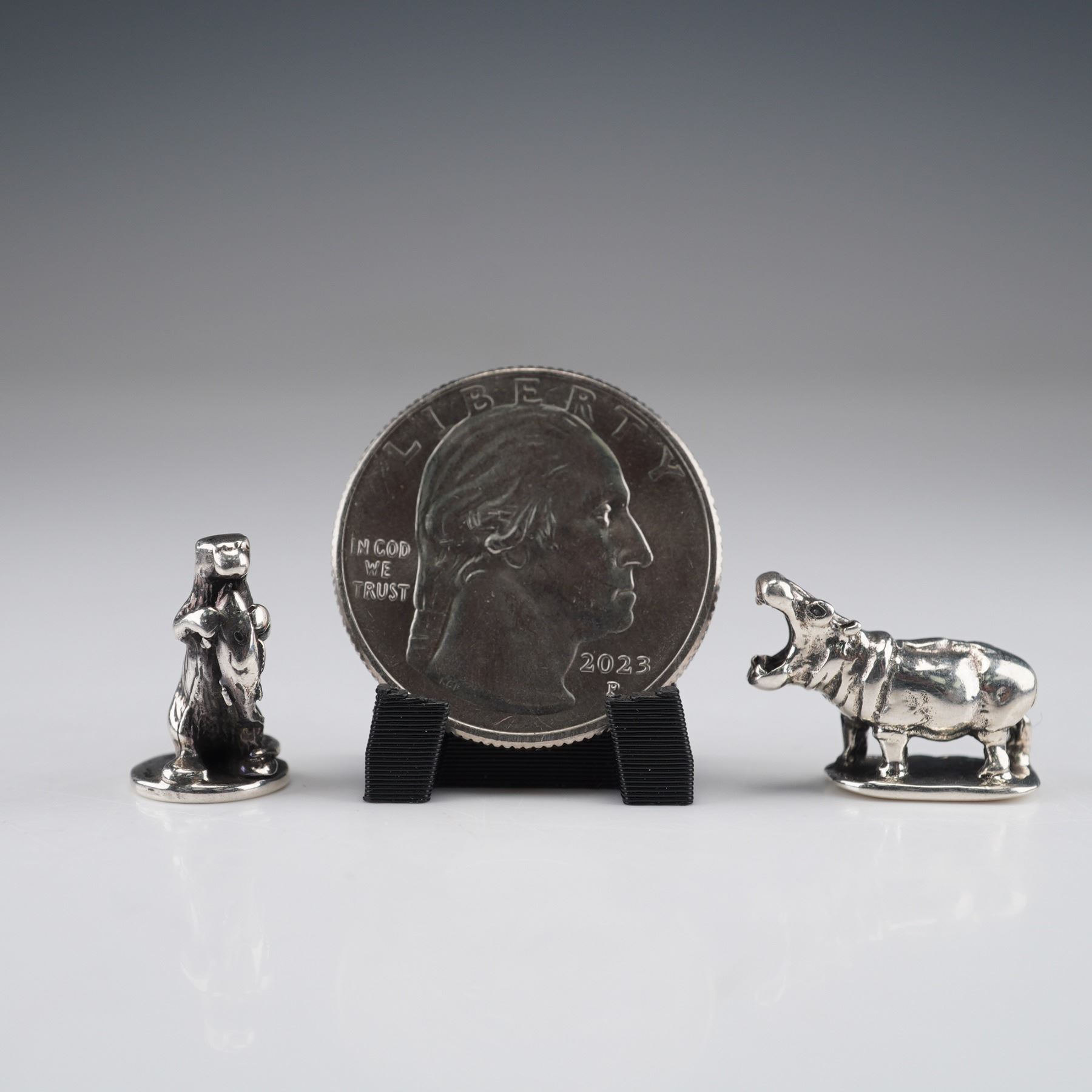 This charming pair of sterling silver miniatures features a beautifully detailed otter and a hippopotamus. One piece is marked 925 for sterling silver, while the other is marked STERLING. Both pieces showcase fine craftsmanship, making them a delightful addition to any miniature or silver collection. Net Silver weight 0.263 troy oz.