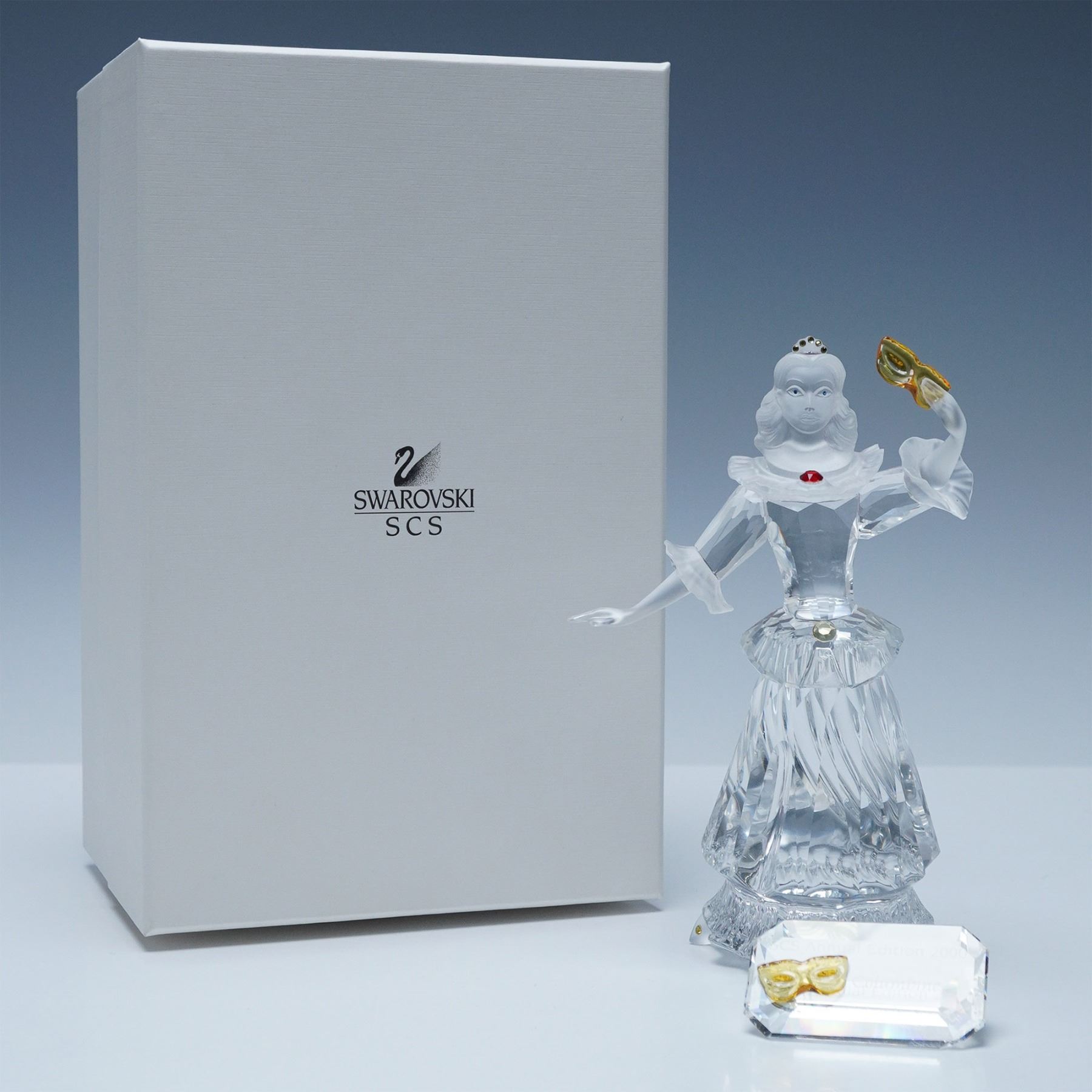 The second edition of the Masquerade trilogy, Columbine was available only to SCS members, she features a faceted clear crystal body with red and yellow accents. Etched Swarovski backstamp. This item has its original box and a base included.