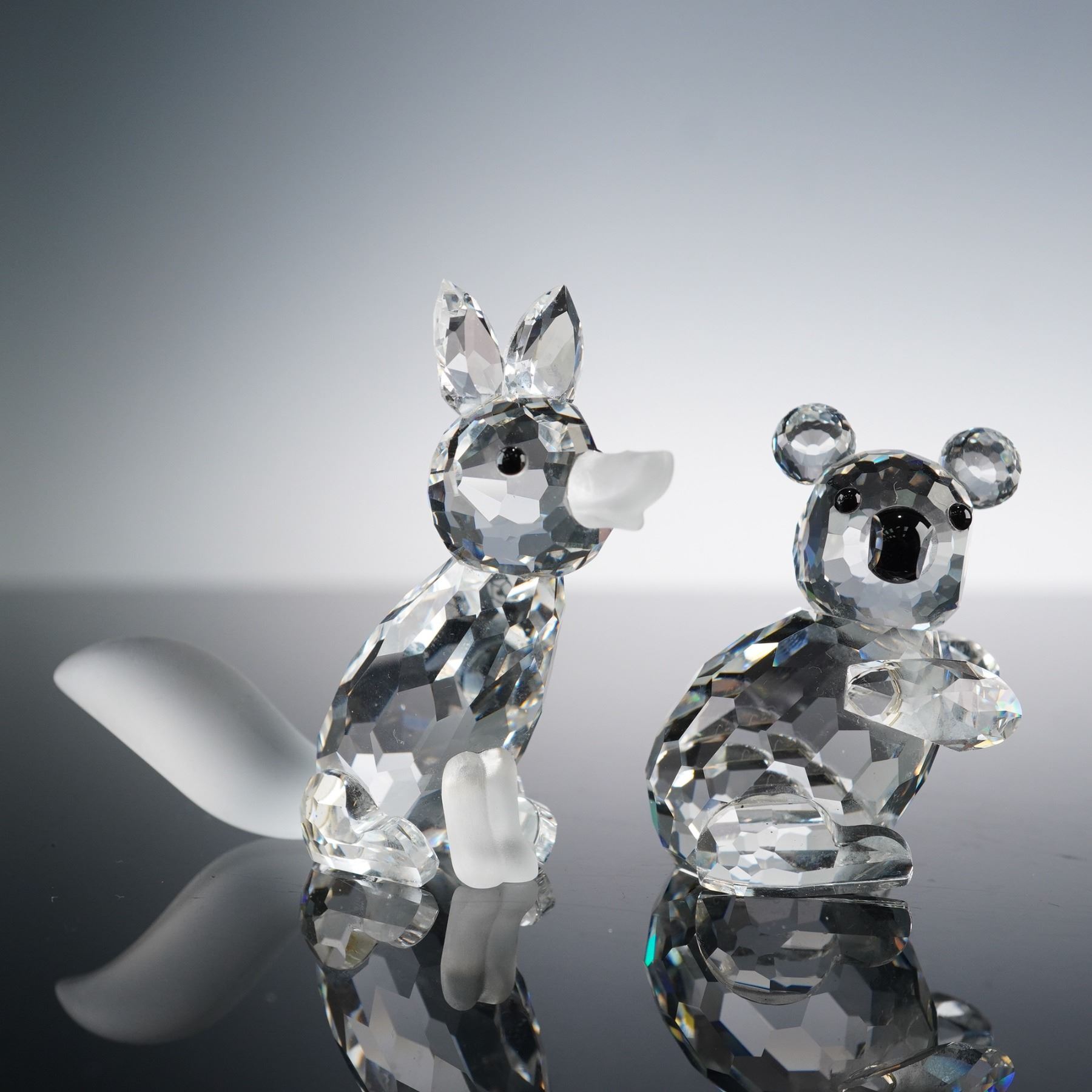 2pc Swarovski Crystal Figurines, Fox & Koala