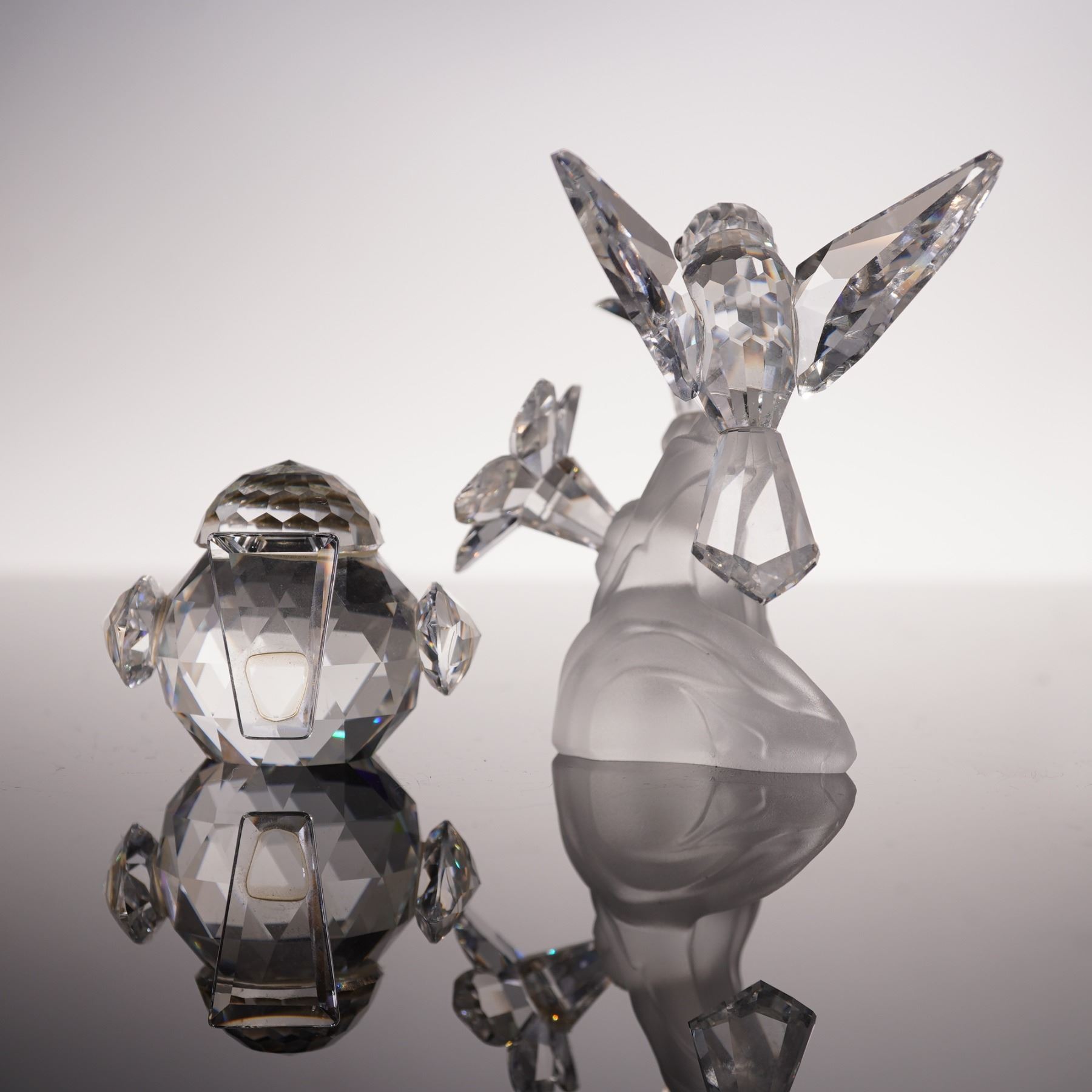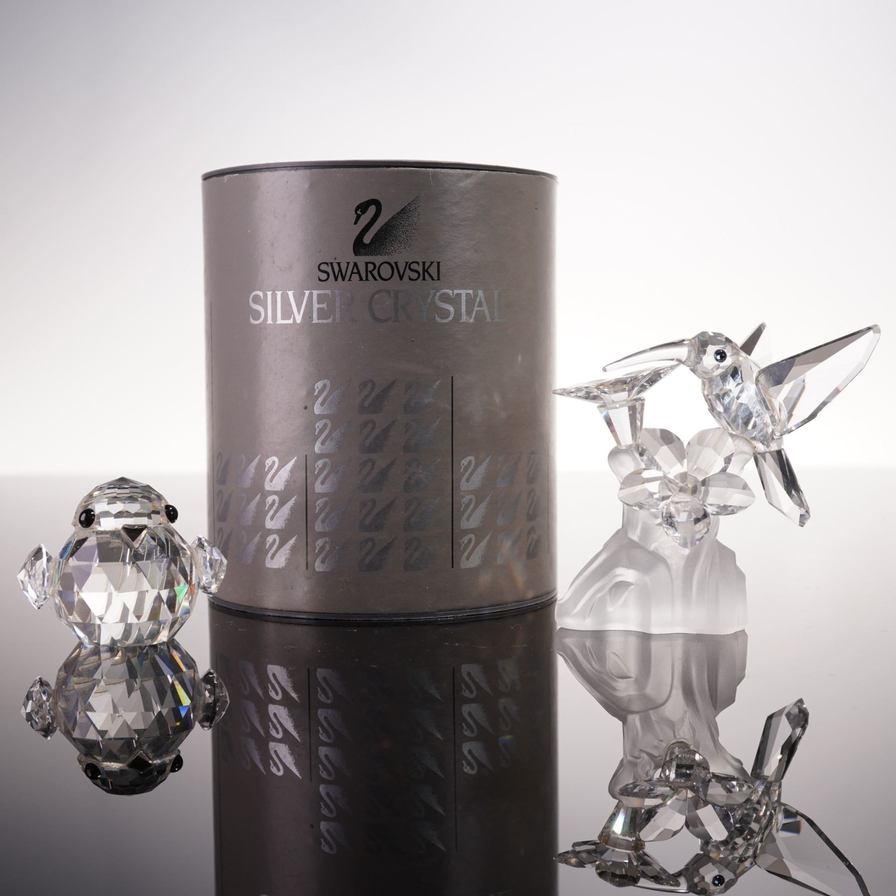 2pc Swarovski Crystal Figurines, Hummingbird & Large Sparrow