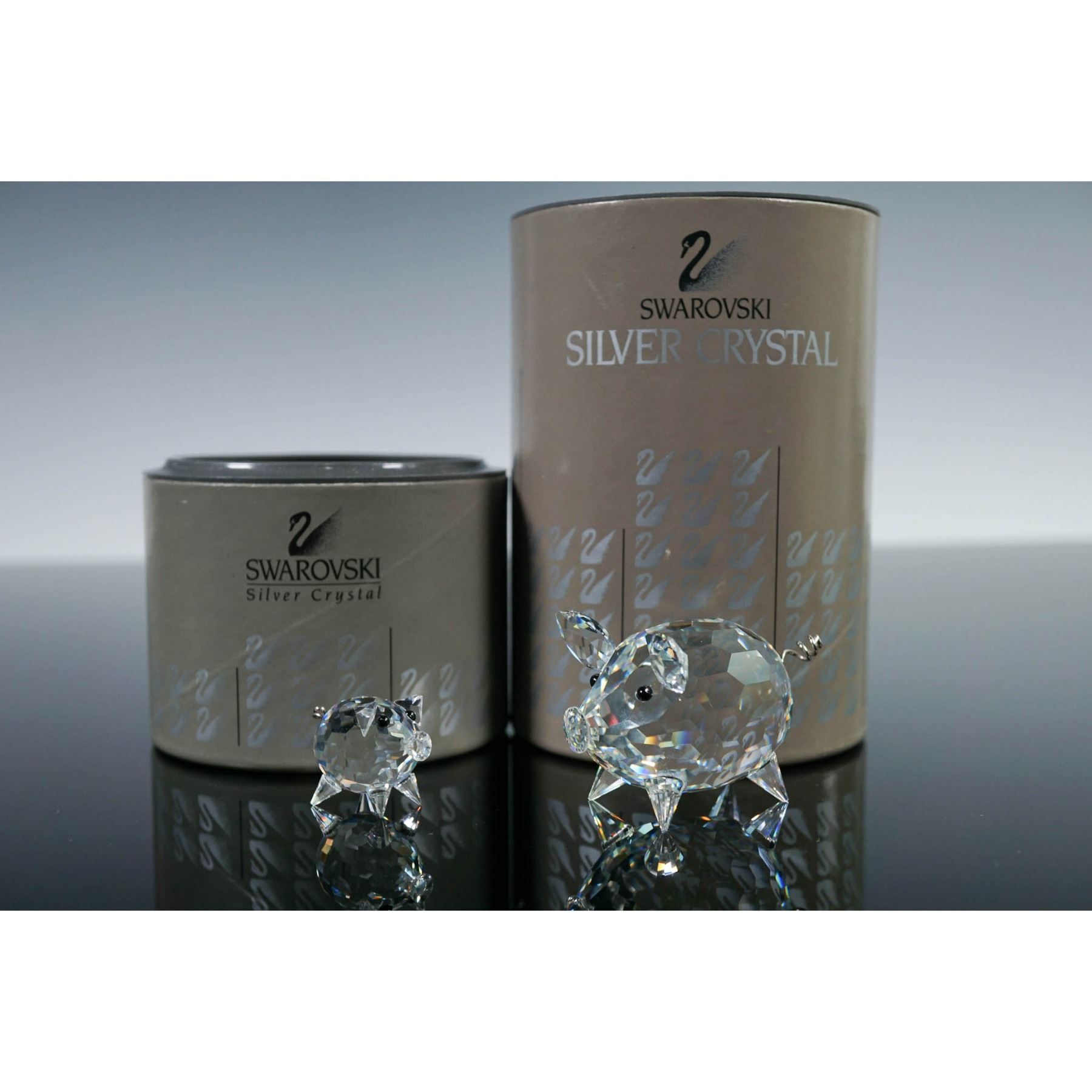 2pc Swarovski Crystal Figurines, Pig Medium and Mini