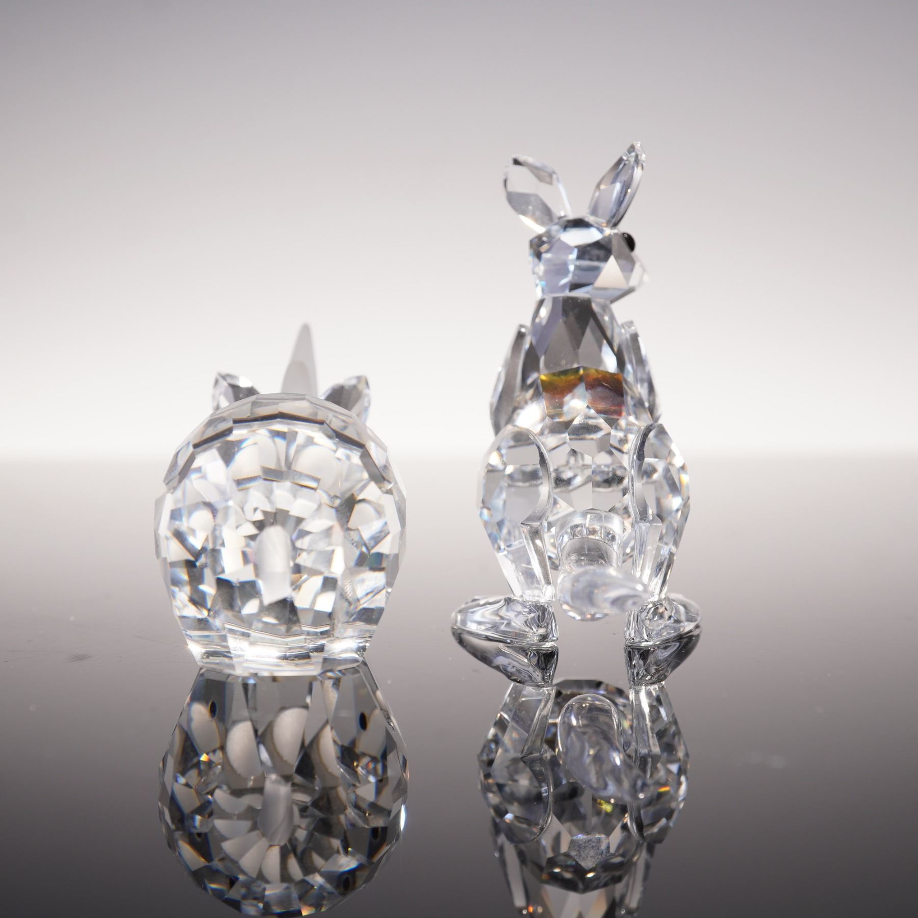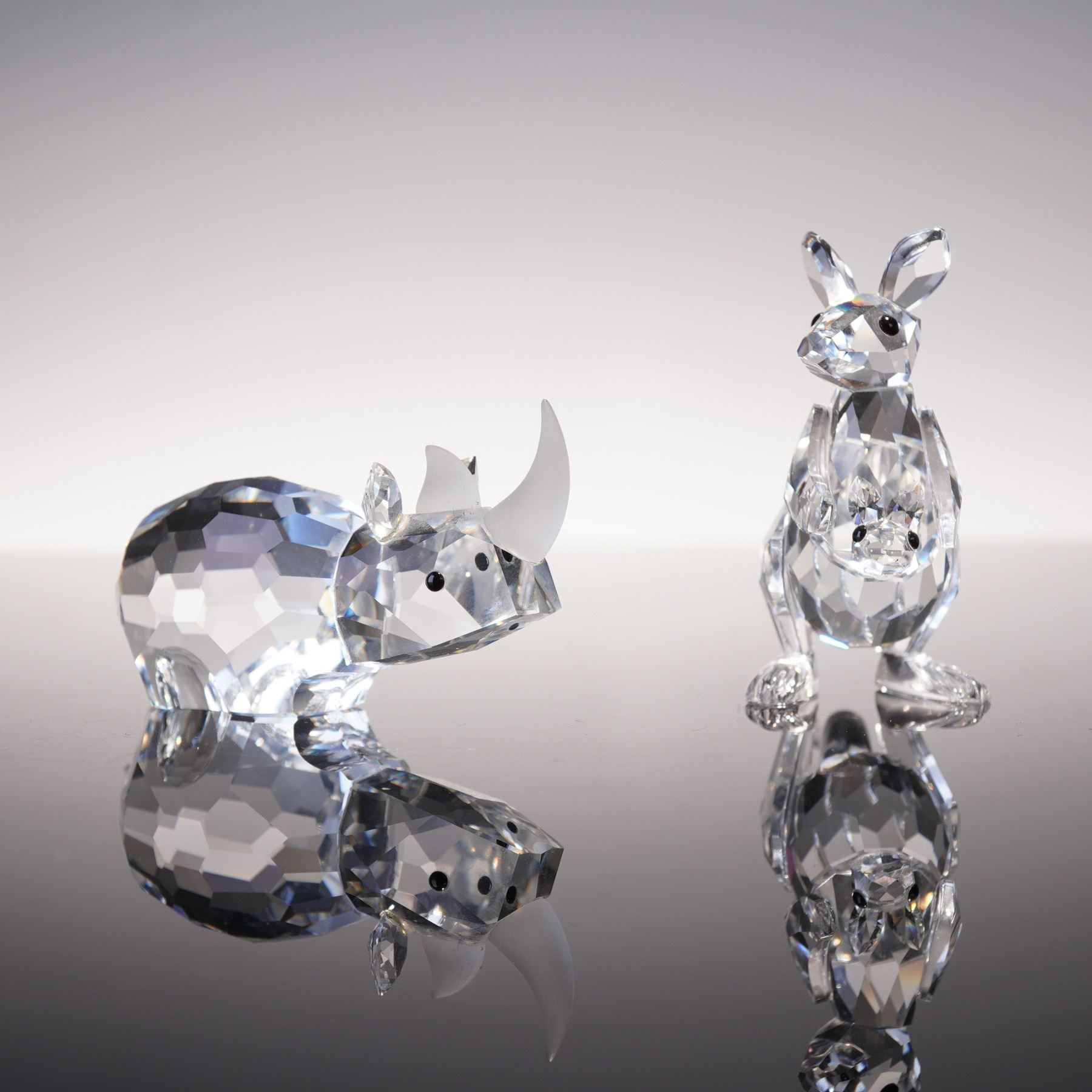 2pc Swarovski Crystal Figurines, Rhino and Kangaroo