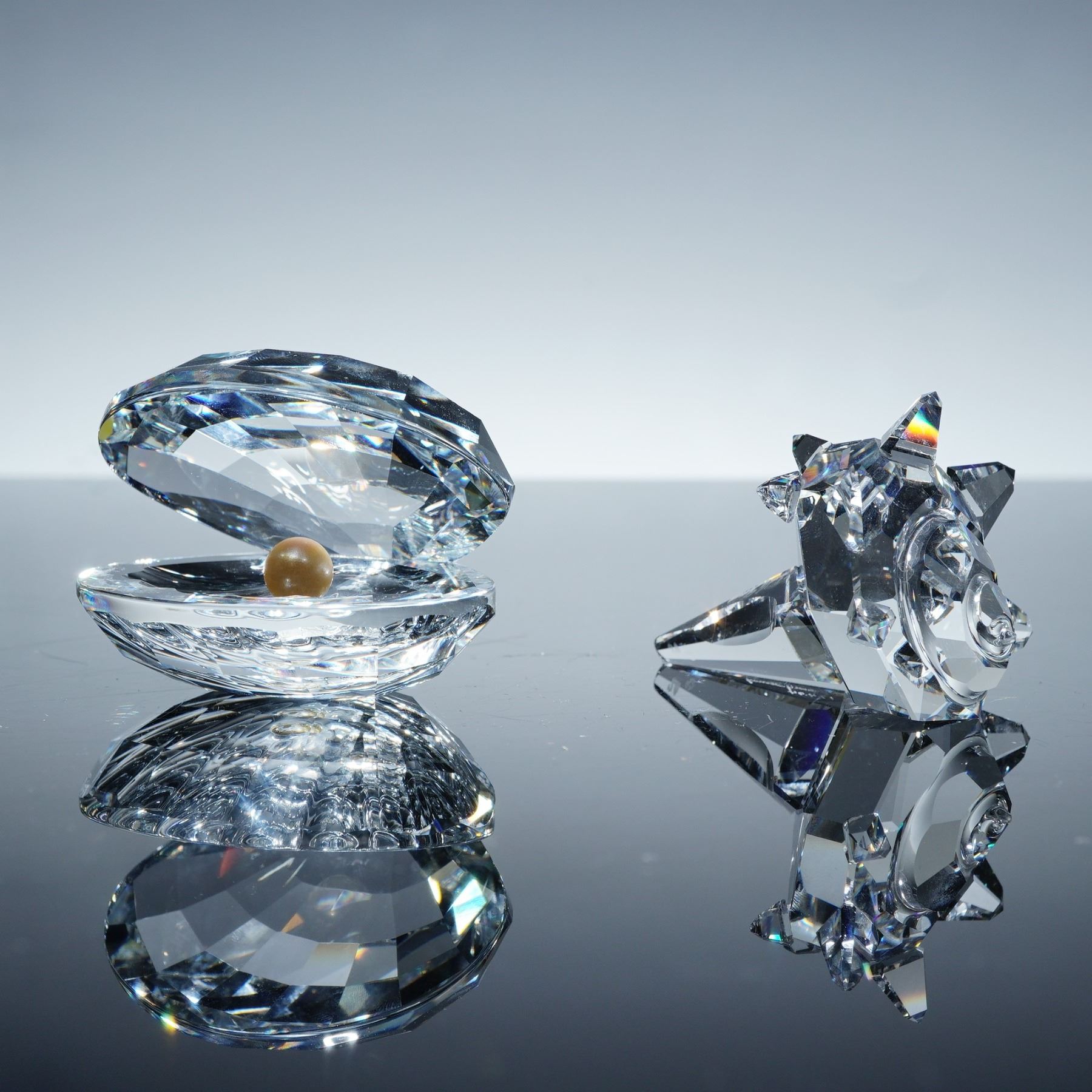 2pc Swarovski Crystal Figurines, South Sea Shell & Large Shell with Pearl
