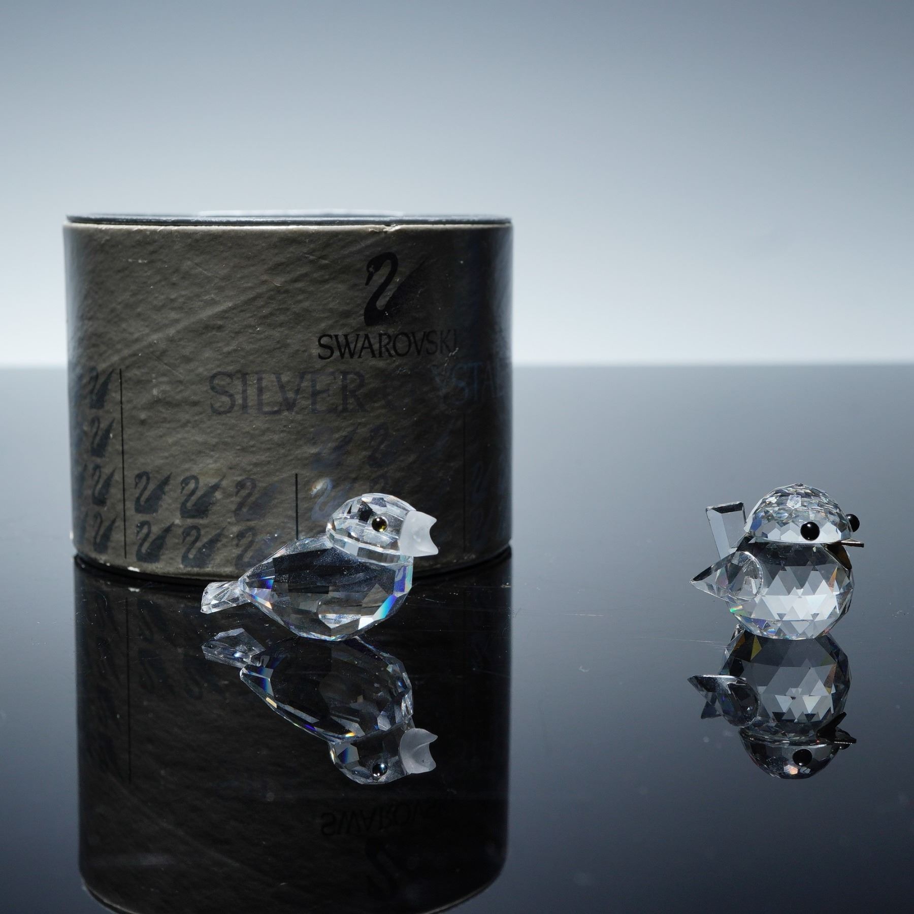 2pc Swarovski Crystal Figurines, Sparrows 169685 and 010017