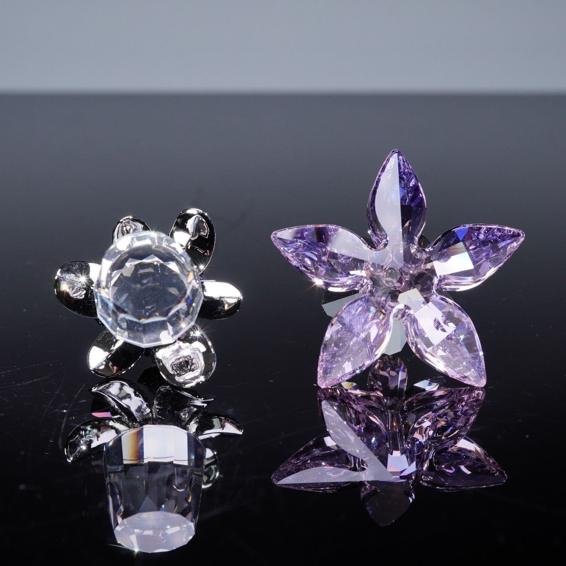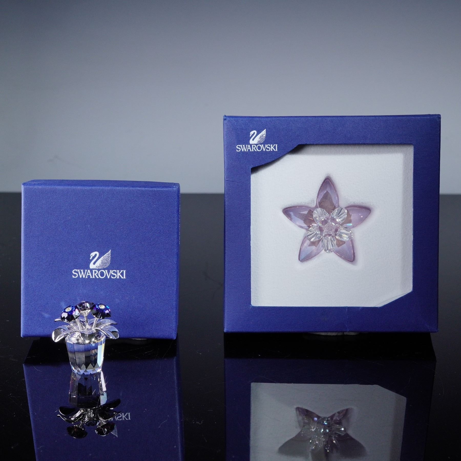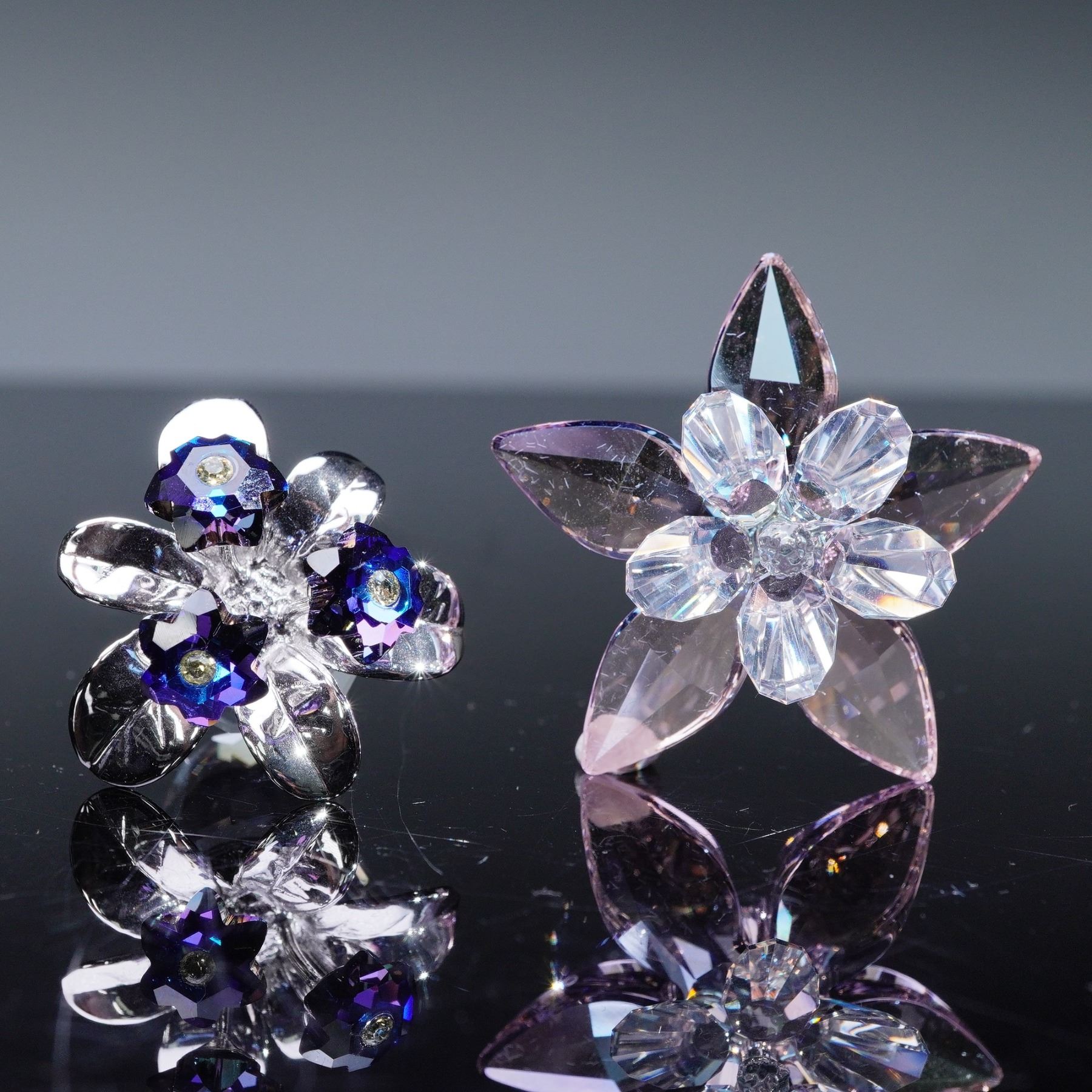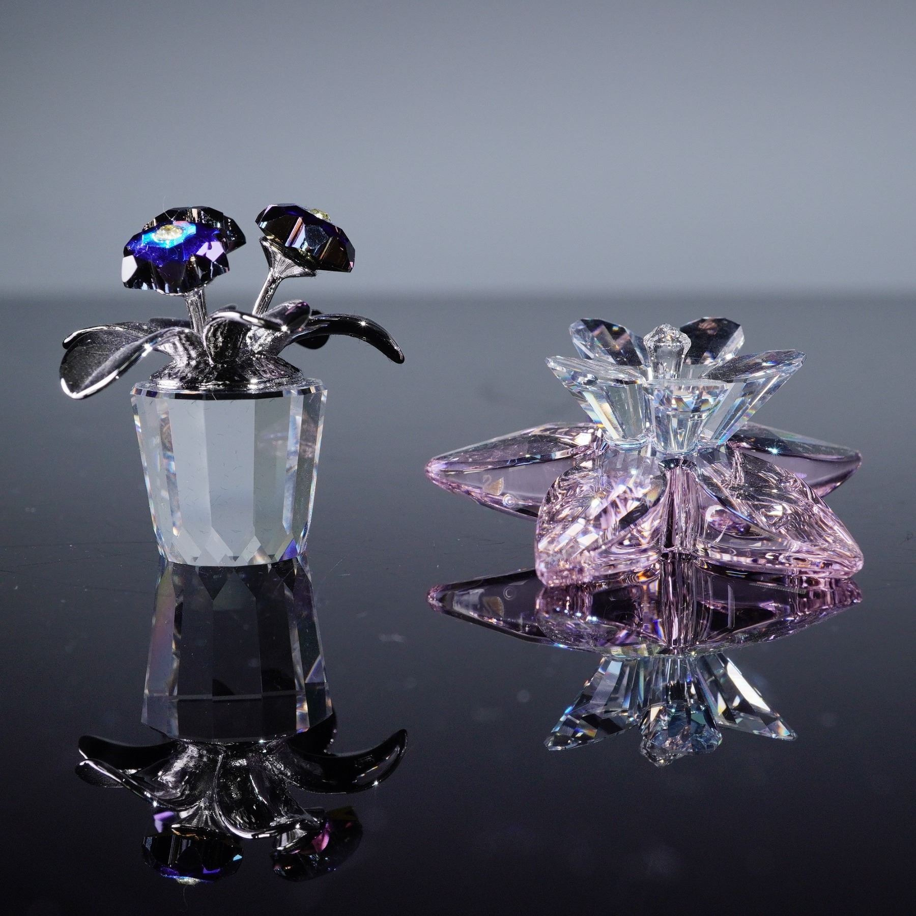 2pc Swarovski Crystal Flower Figurines, Rosaline Moonlight and Primula Blue