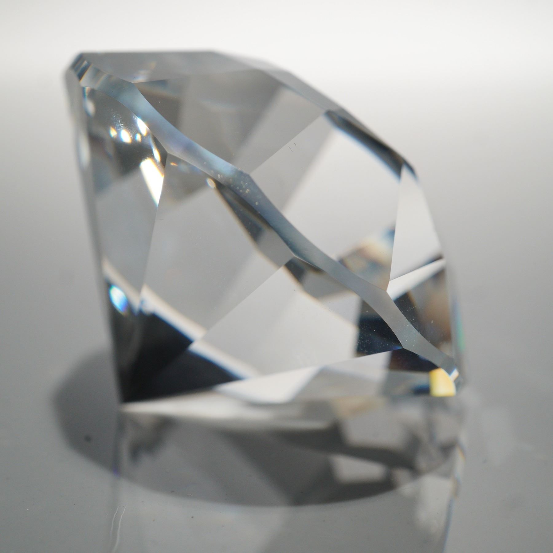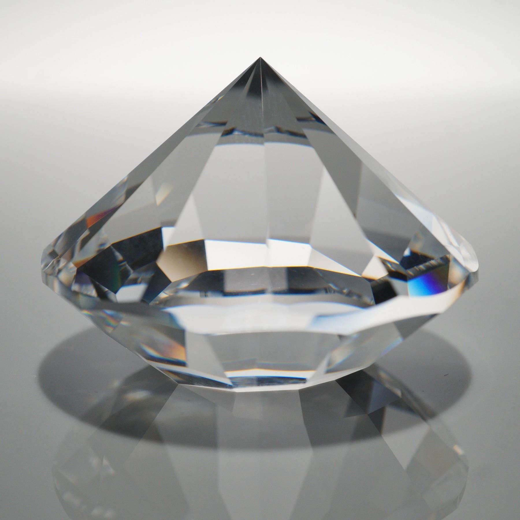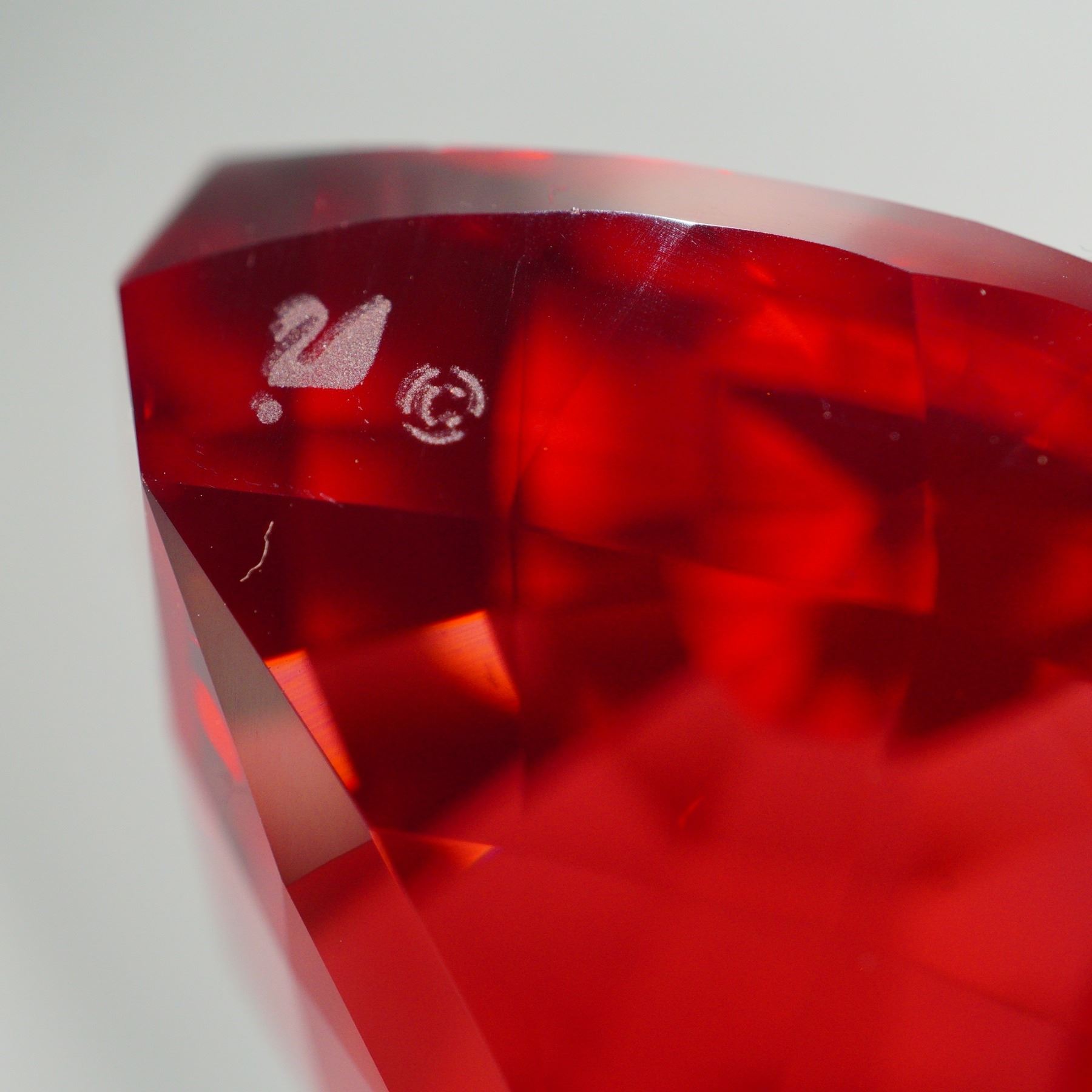 A duo of brilliant Swarovski crystal paperweights including a faceted red crystal heart and a large faceted clear crystal chaton. Both pieces are finely cut with dazzling clarity and come housed in their original Swarovski SCS boxes. Marked with the Swarovski logo.