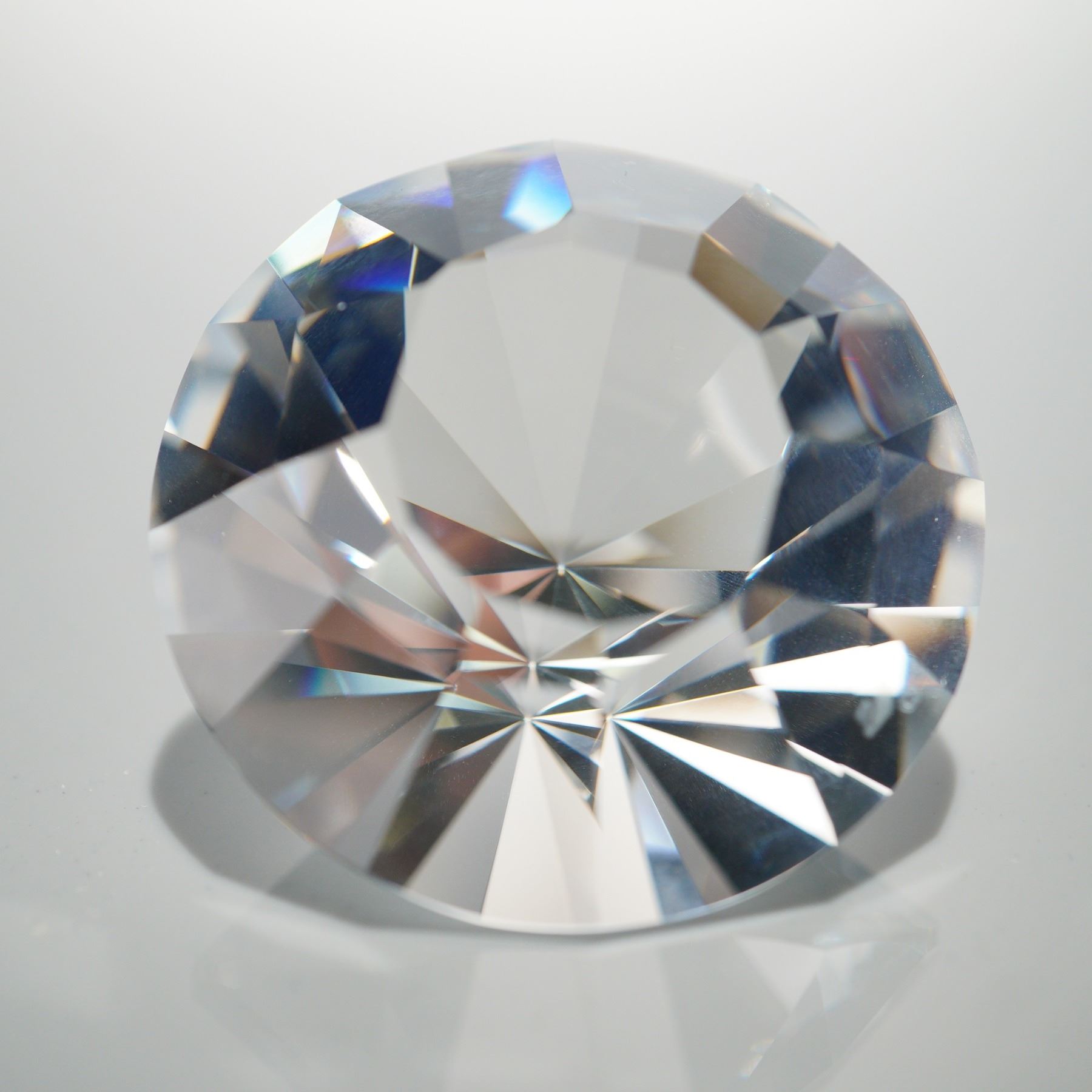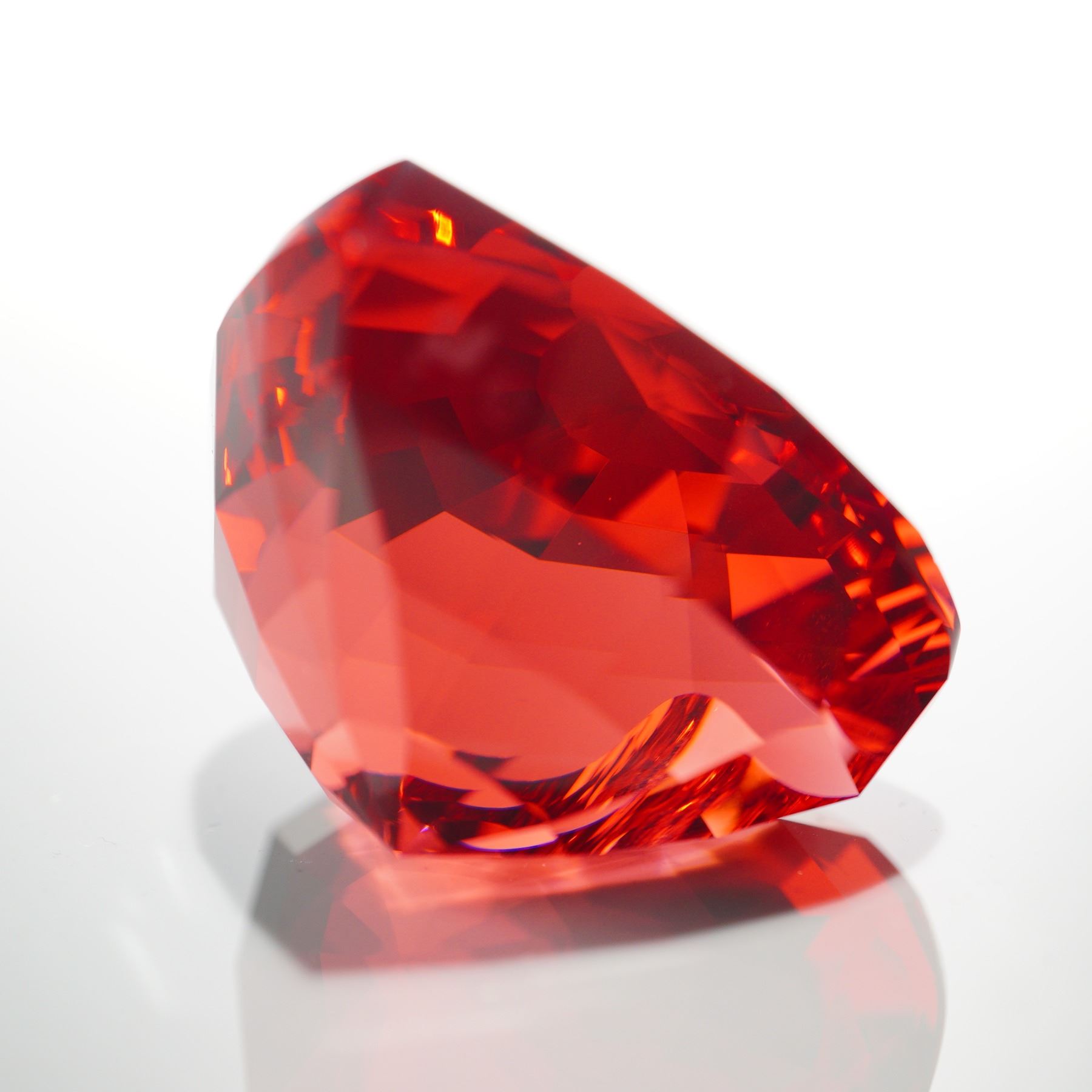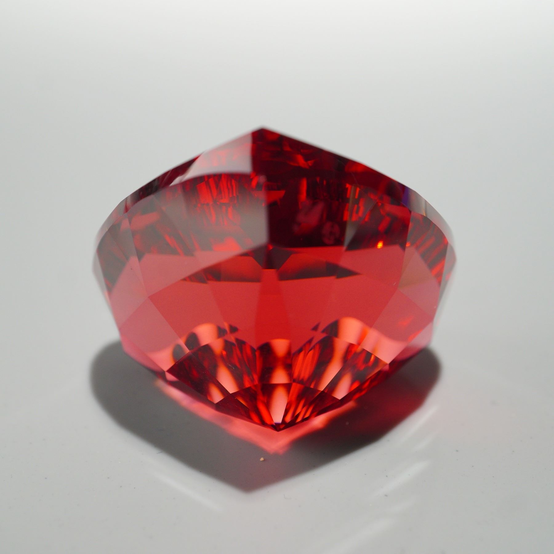 A duo of brilliant Swarovski crystal paperweights including a faceted red crystal heart and a large faceted clear crystal chaton. Both pieces are finely cut with dazzling clarity and come housed in their original Swarovski SCS boxes. Marked with the Swarovski logo.