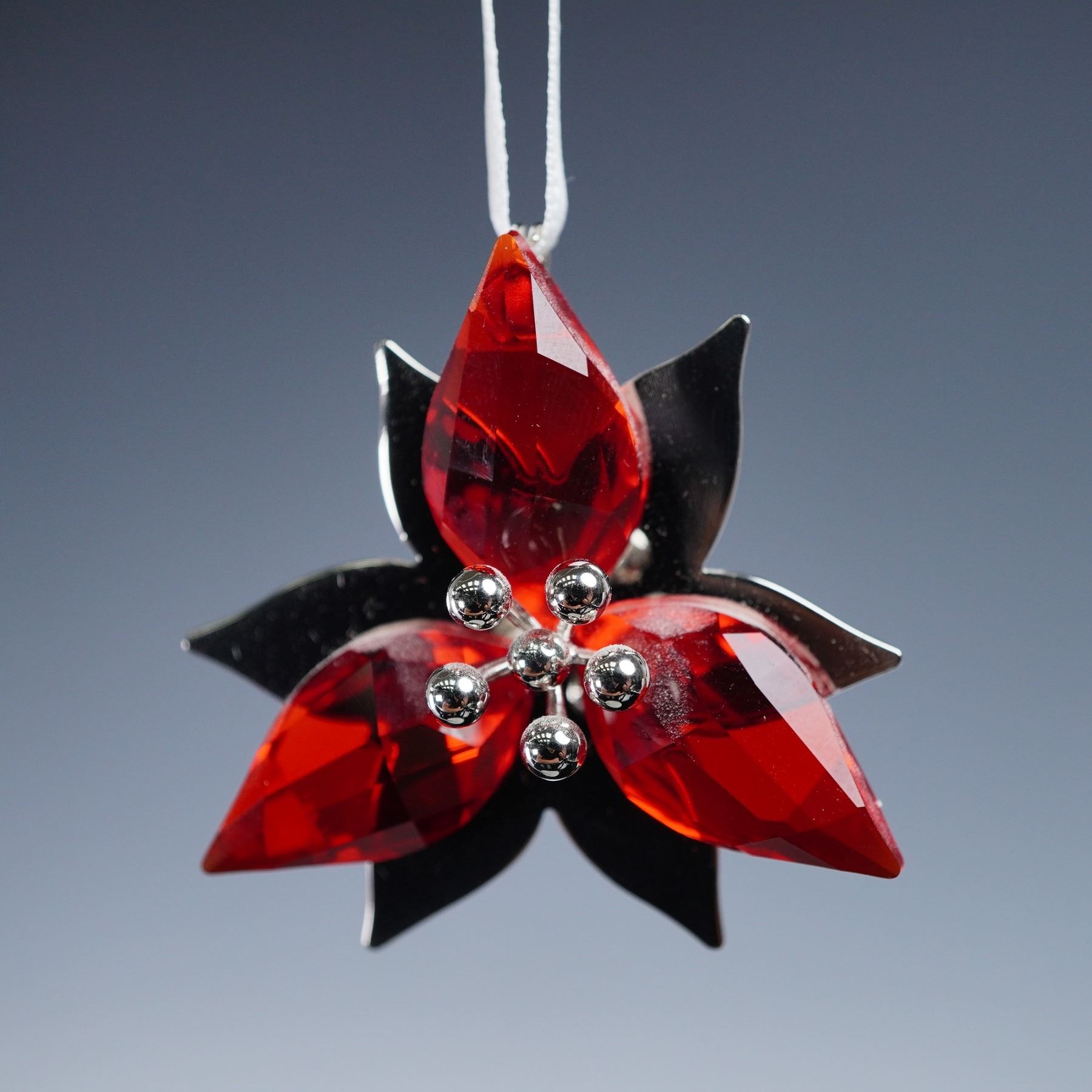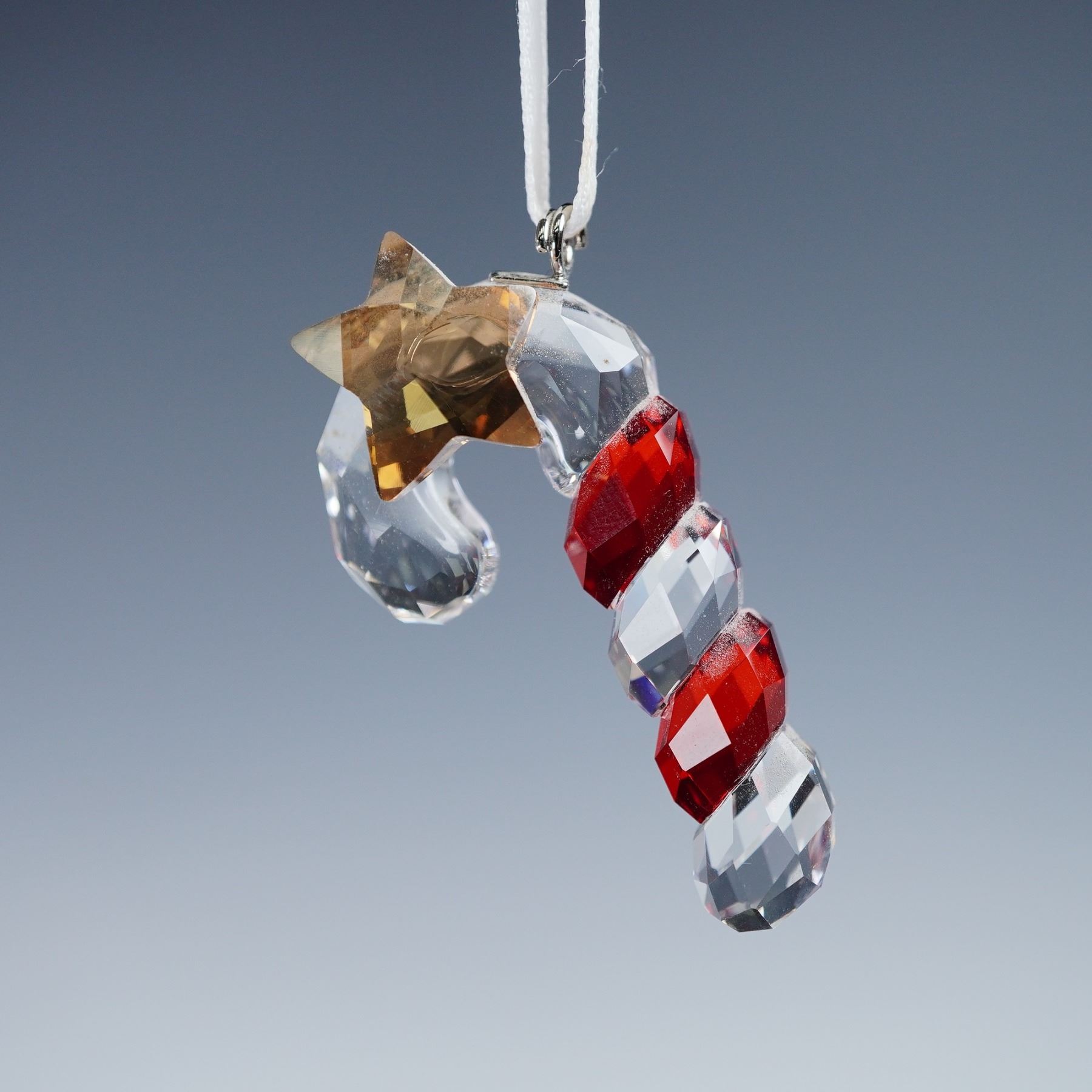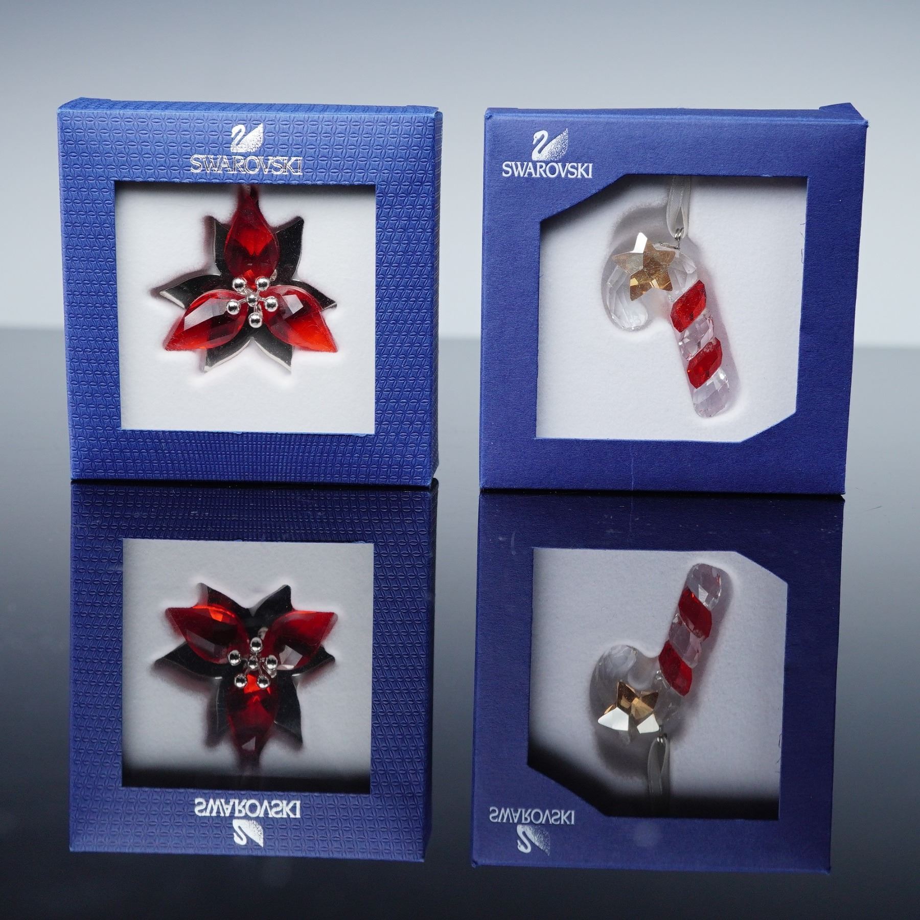 2pc Swarovski Crystal Tree Ornaments, Poinsettia & Candy Cane