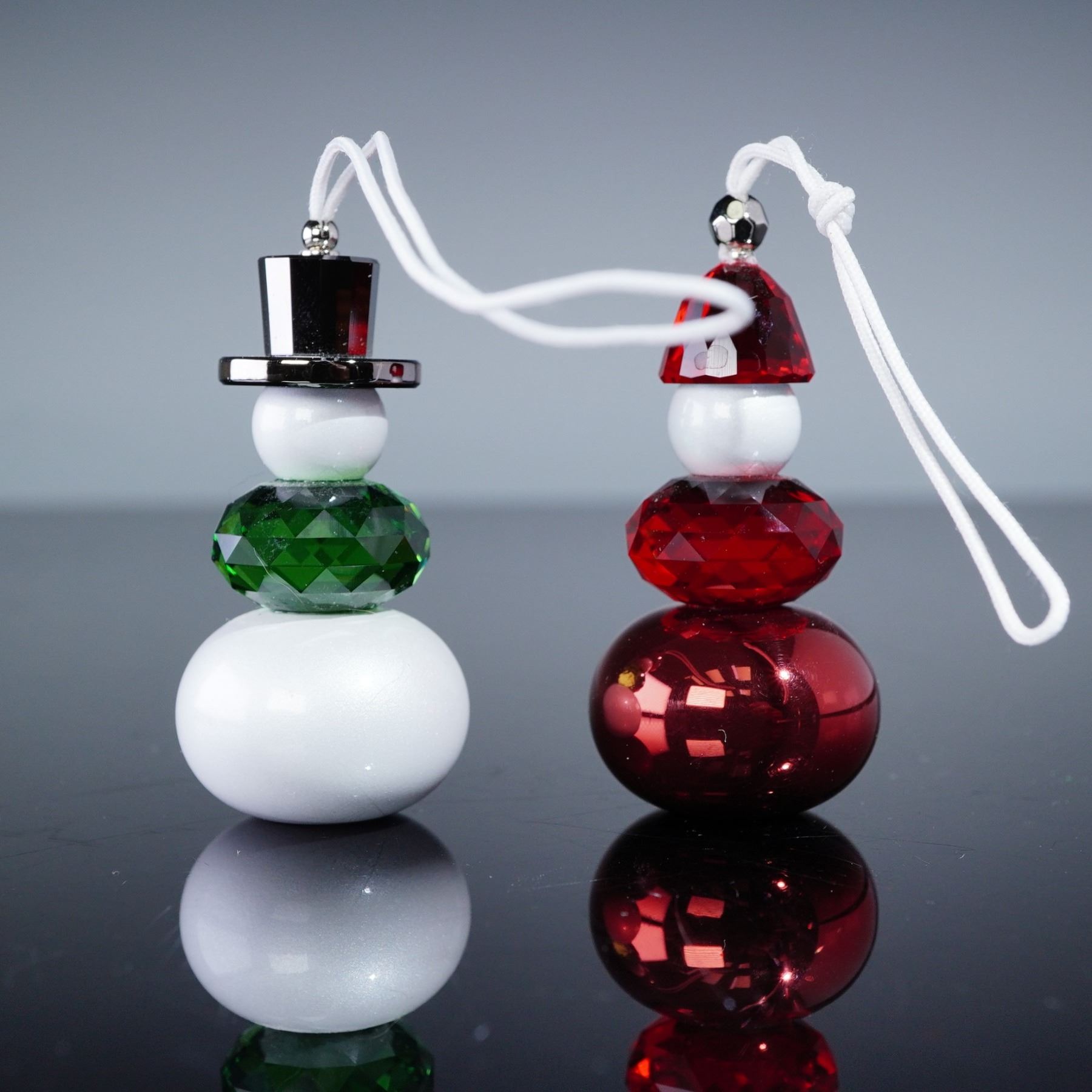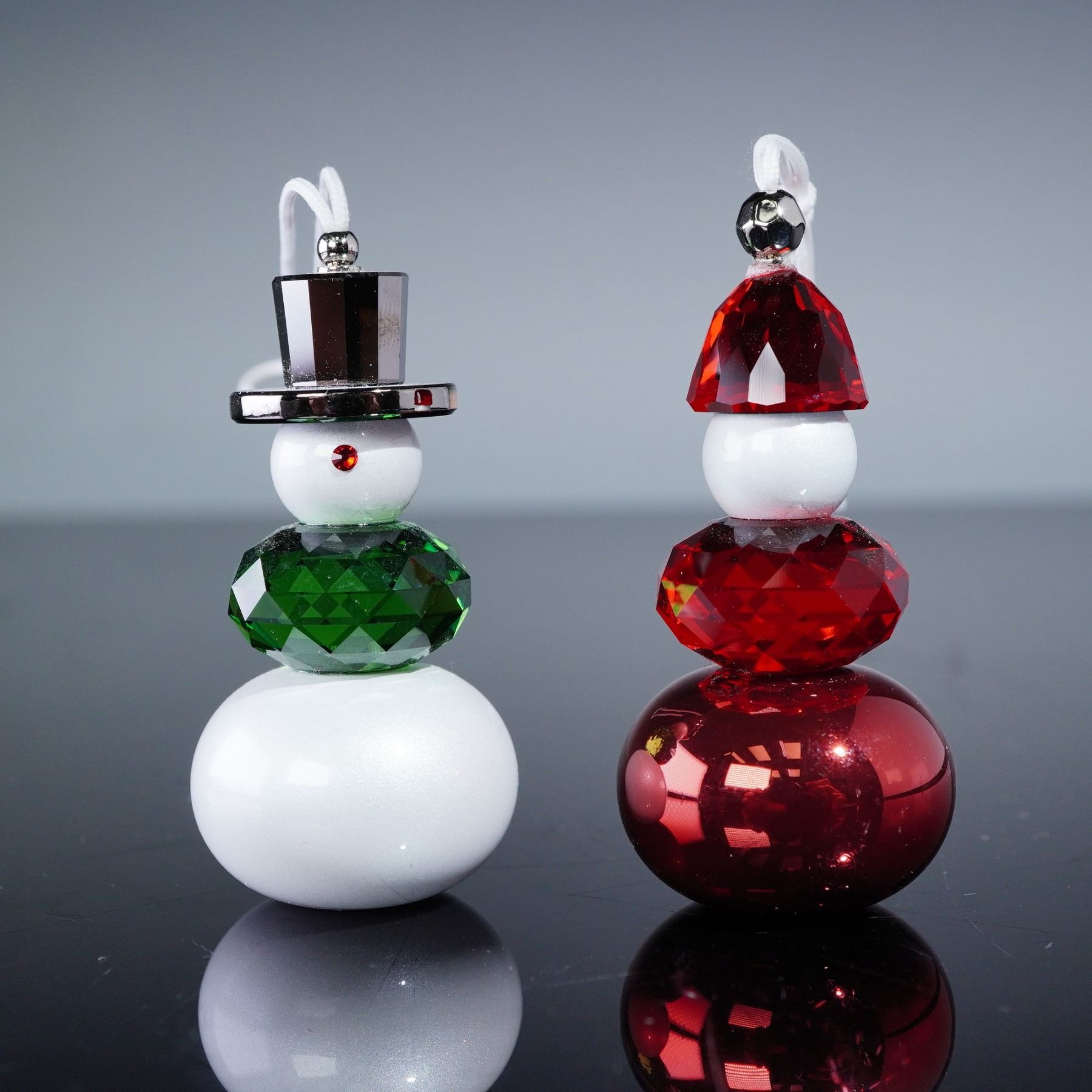2pc Swarovski Crystal Tree Ornaments, Santa Claus & Snowman