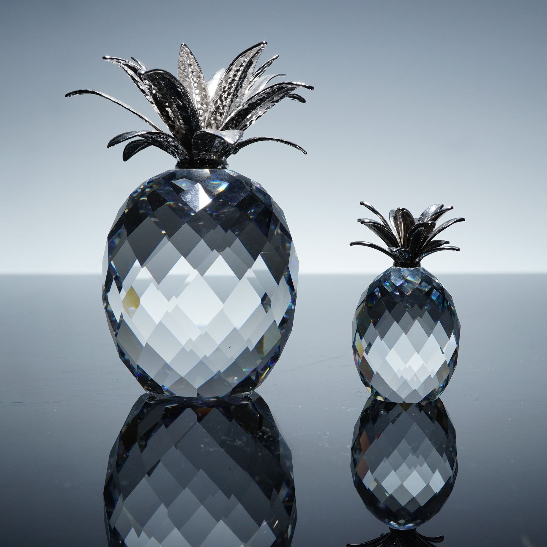 2pc Swarovski Sparkling Fruit Crystal Figurines, Large & Small Pineapples