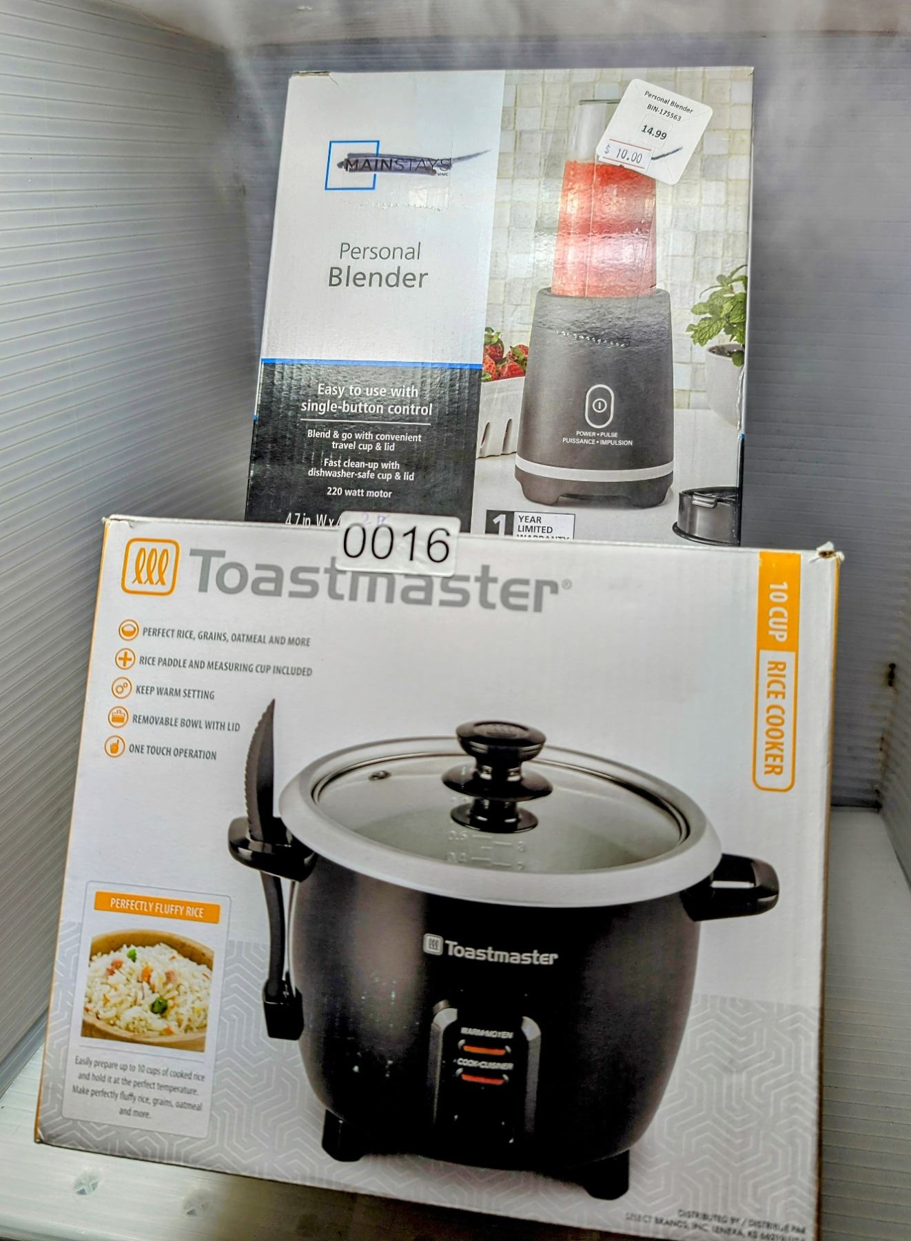 2pc - Toastmaster 10 cup rice cooker & Mainstay personal blender 16oz (tested working in boxes)