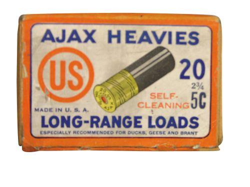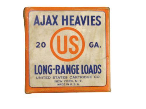 Two Piece U.S. Shot Shell Box for 20 gauge Ajax heavies long range loads, empty. Very good condition, complete.