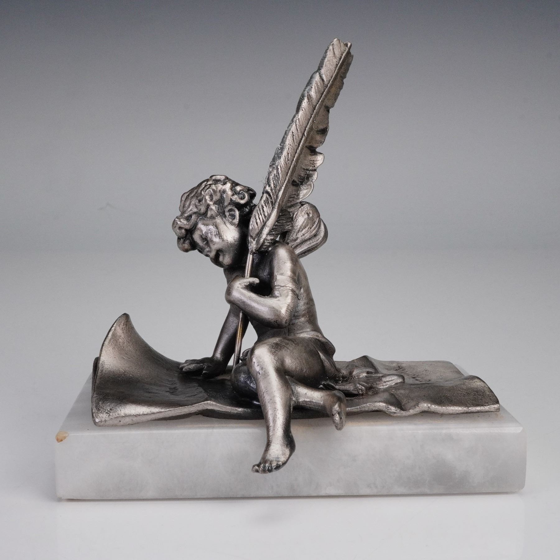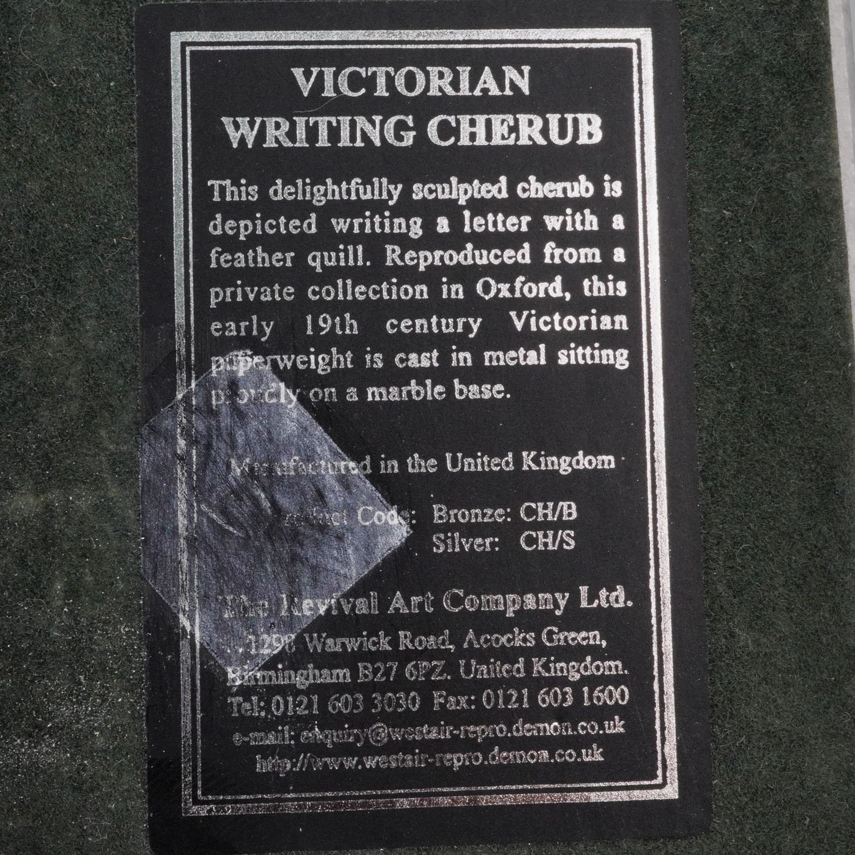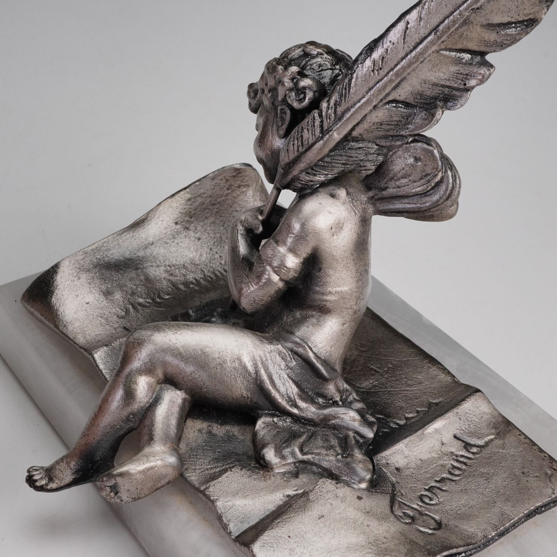2pc Victorian Writing Cherub and Metal Figure on Wood Base