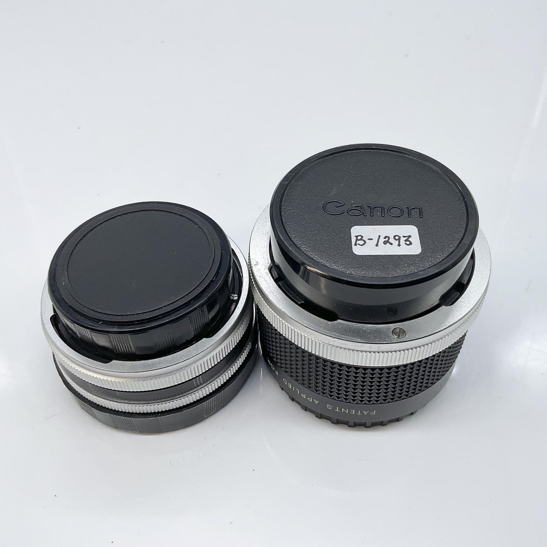 This lot includes two Vivitar camera lenses, both accompanied by their original caps. The larger lens is a Vivitar 70-150mm 2X Matched Multiplier with an approximate height of 2.5". The second lens is a Vivitar Auto 2X Custom Tele-Converter Model 2X-4 with aperture setting range. Both lenses are well-suited for photography enthusiasts or collectors looking for vintage Vivitar equipment.