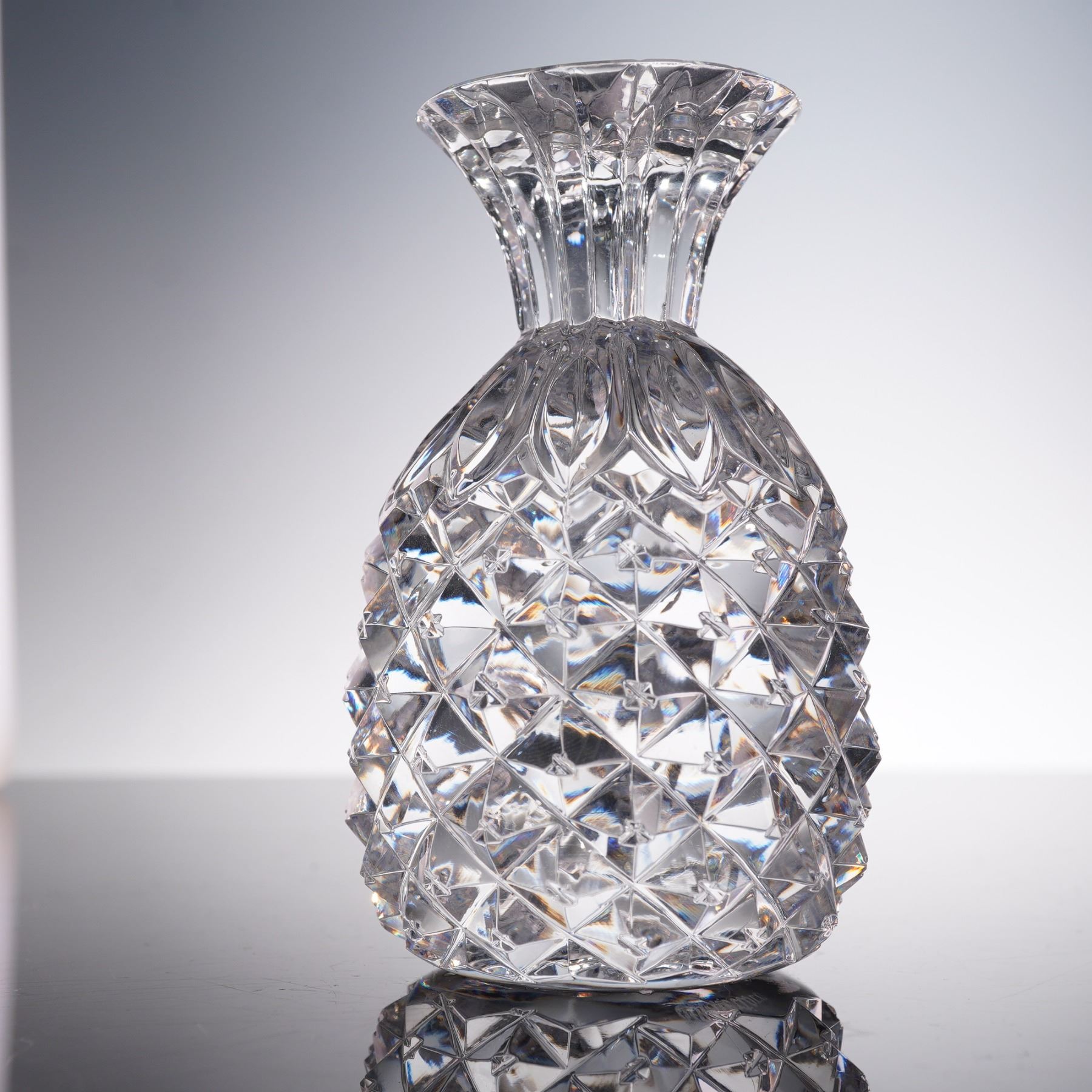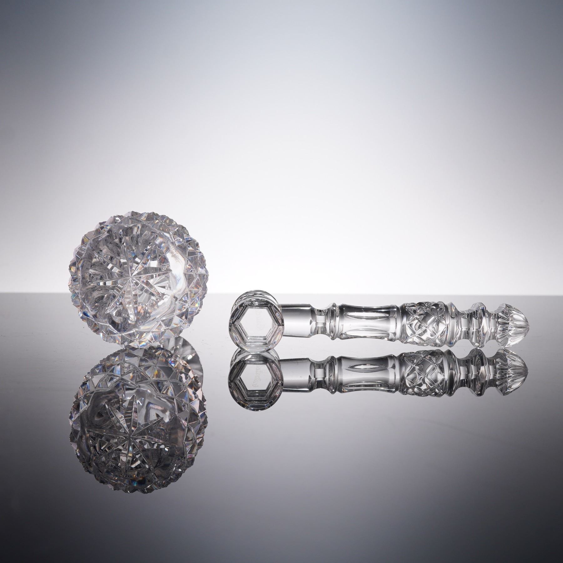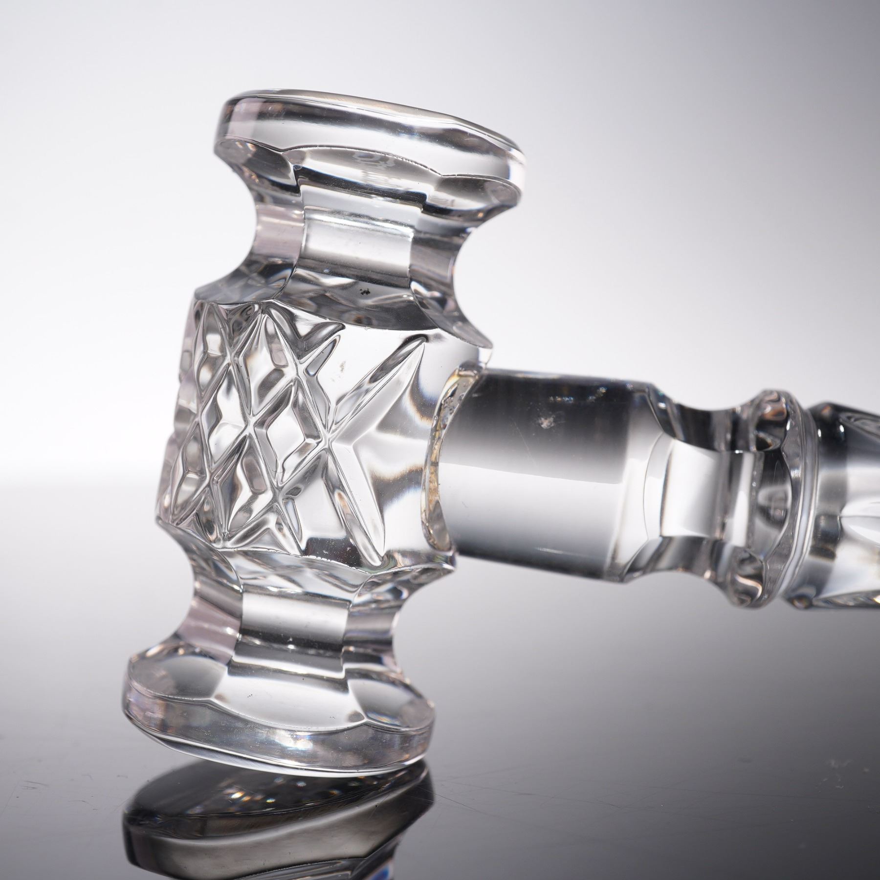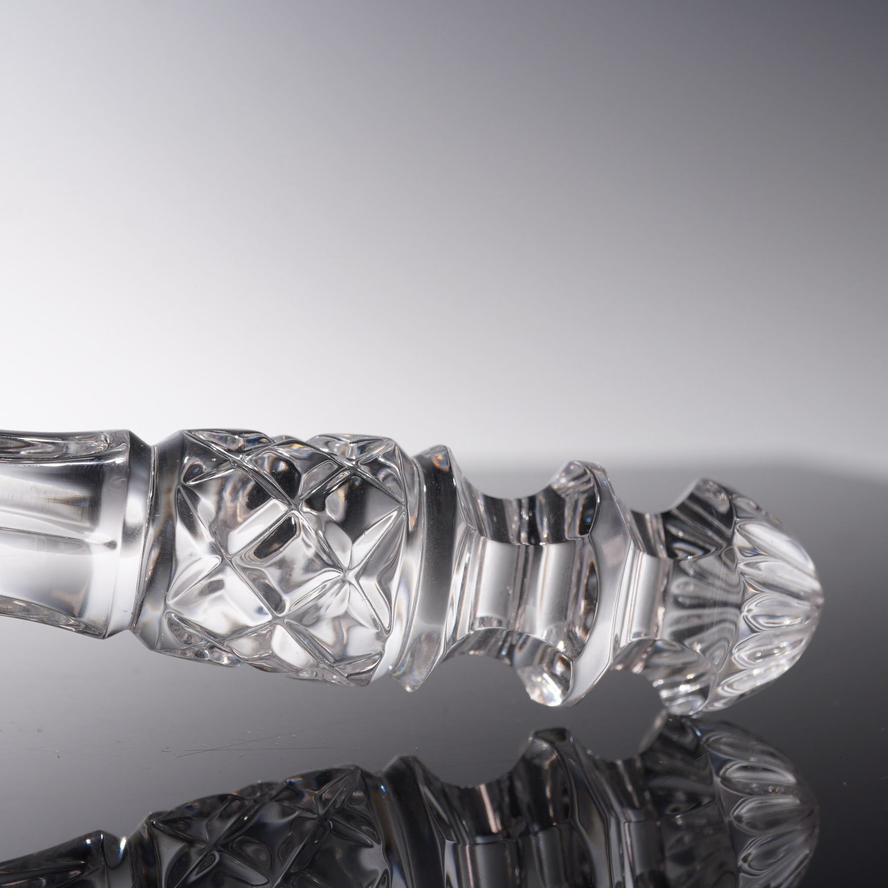 This elegant pair of Waterford crystal pieces showcases the timeless craftsmanship and brilliance for which the brand is renowned. The set includes a beautifully faceted crystal gavel paired with a matching pineapple-form stand, both featuring the intricate cut designs and polished clarity characteristic of Waterford's finest work. The gavel, with its gracefully contoured handle and precision-cut detailing, rests perfectly against the complementary stand, which is crafted in the iconic pineapple motif symbolizing hospitality and warmth. Both pieces are finely etched with the Waterford mark, ensuring authenticity and adding to their collectible appeal. Ideal as a display piece or as a distinguished gift, this Waterford crystal gavel and pineapple combination exudes sophistication and luxury, making it a striking addition to any curated collection of fine crystal.