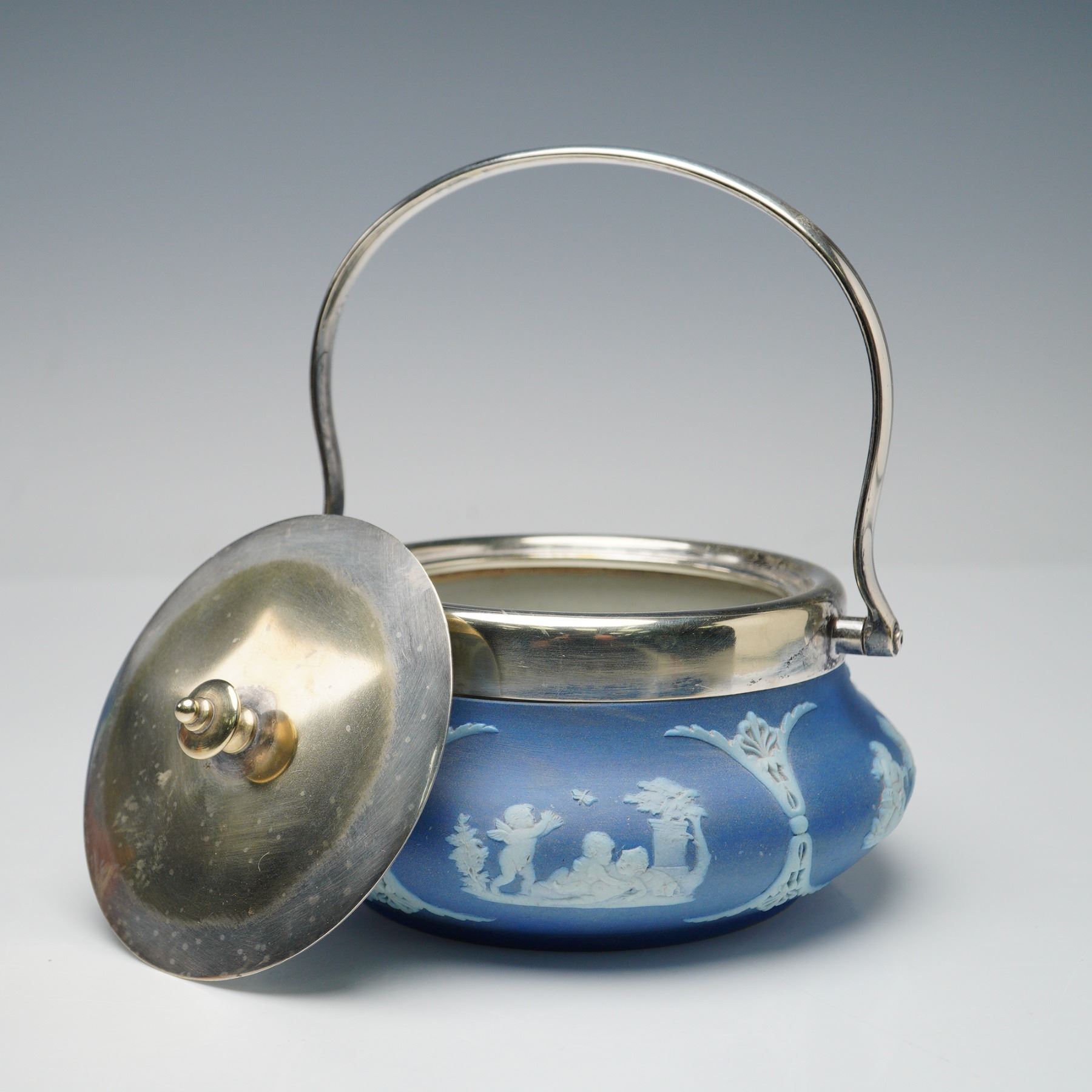 2pc Wedgwood Jasperware EPNS covered Jar and Footed Bowl