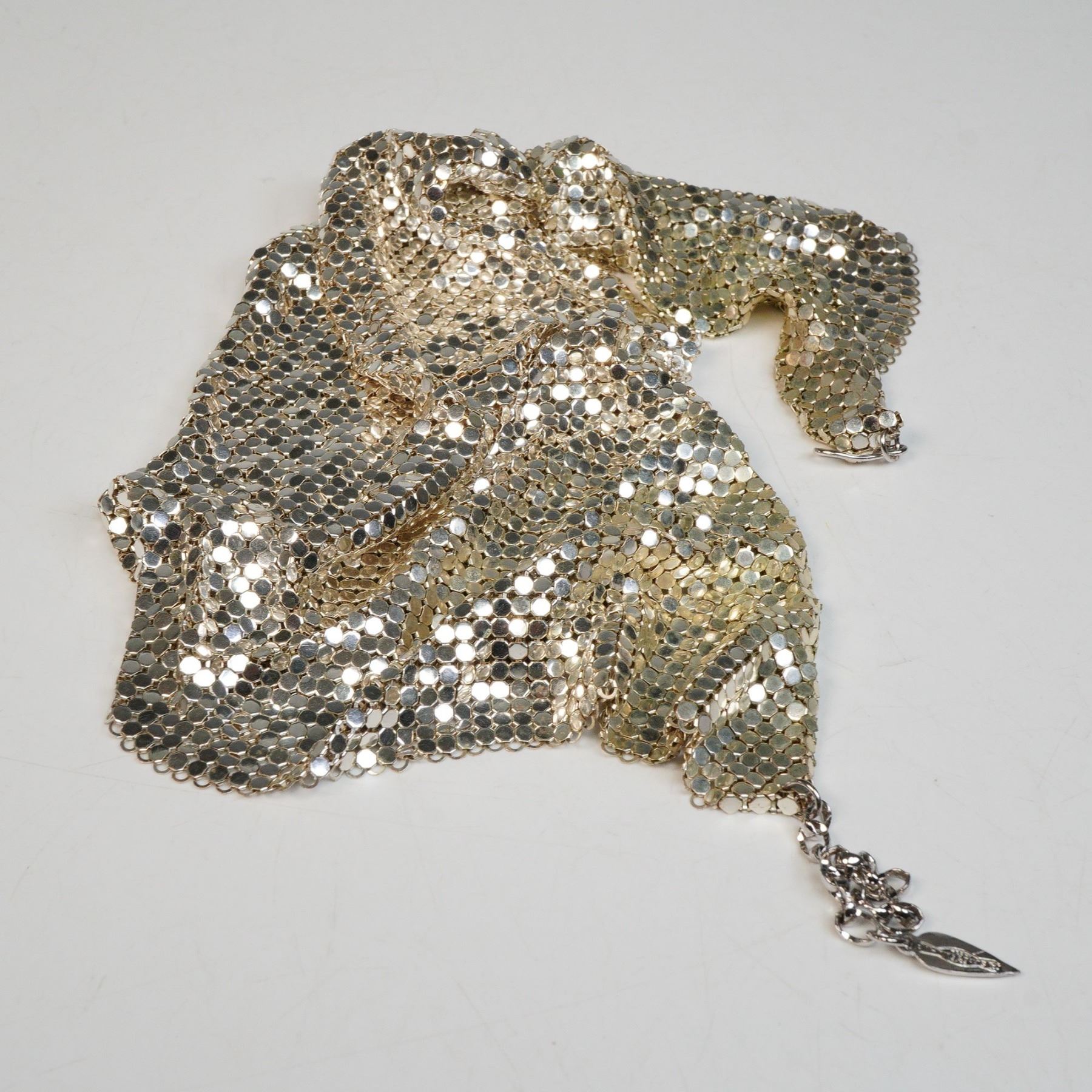 2pc Whiting and Davis Silver Mesh Bib Necklace & Snake Coil Mesh Necklace