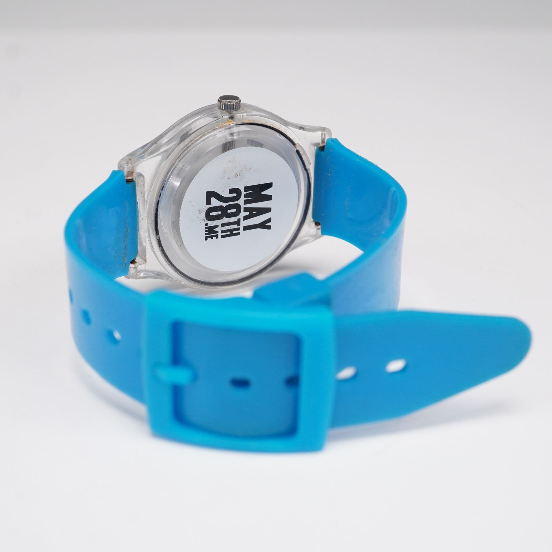 Pair of vintage wristwatches. Includes one Disney Store watch featuring Mickey Mouse on the caseback, marked Made Exclusively for The Disney Store; and one clear case watch with a vibrant underwater sea turtle motif dial. Both with colorful rubber or silicone bands.