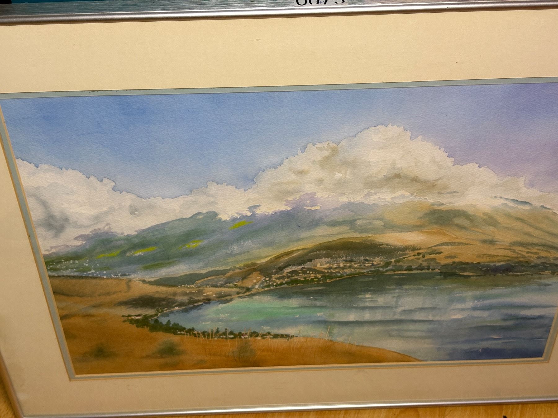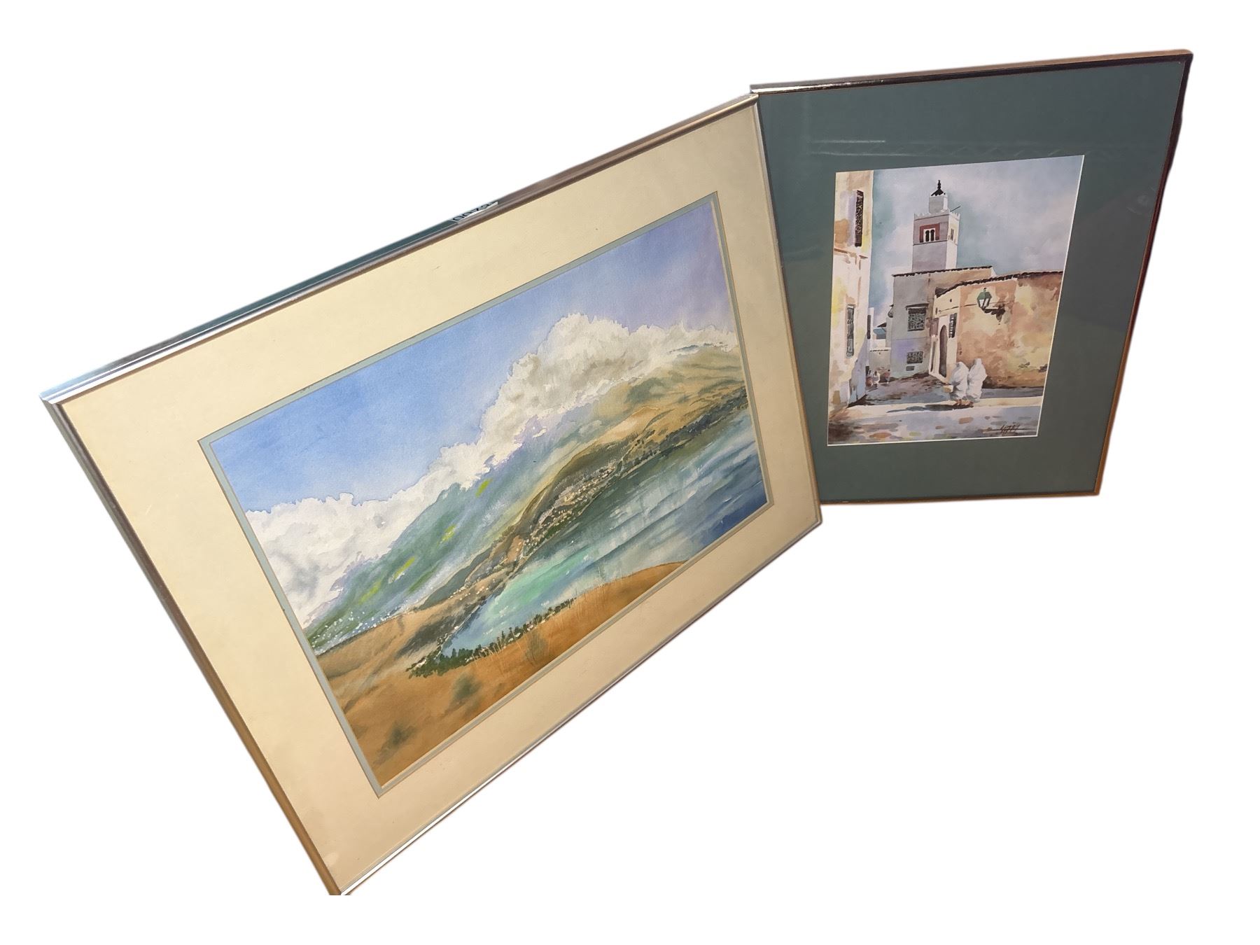 2pc assorted framed paintings - large one approx. 26in x 20in