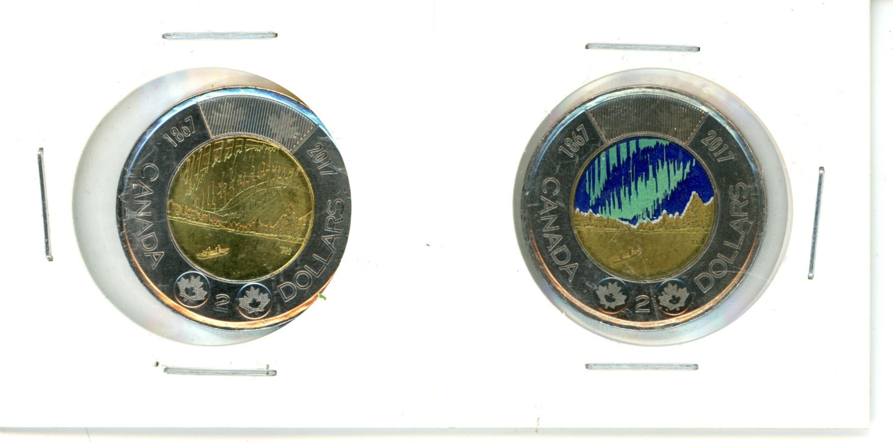 2x 1867-2017 Northern Lights Toonies - Color and Non-Color
