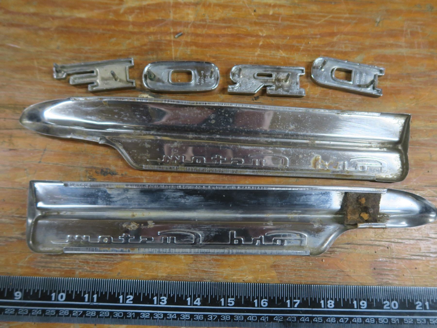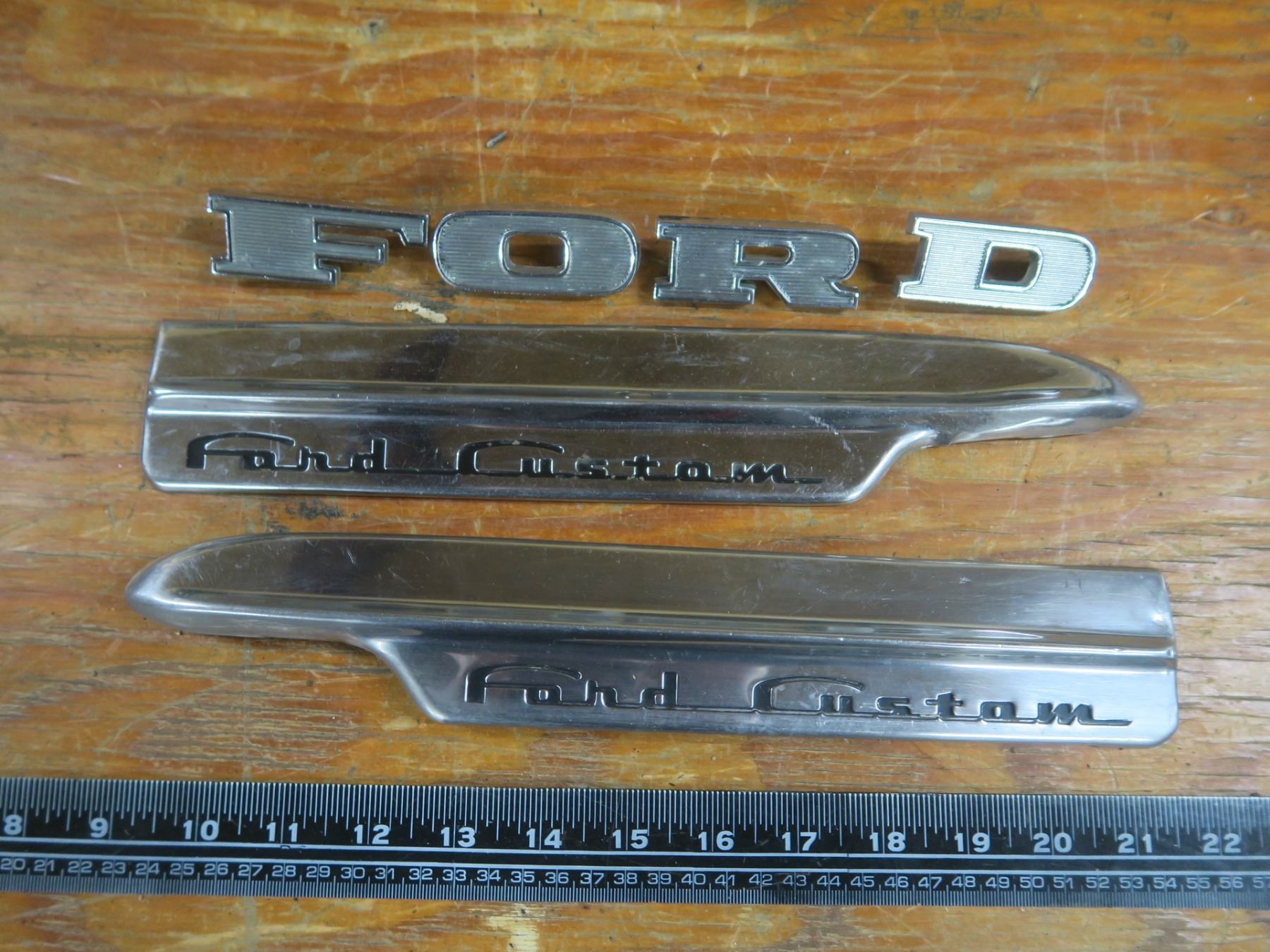 2x 1950 Ford Custom chrome badges and 4pc FORD badge