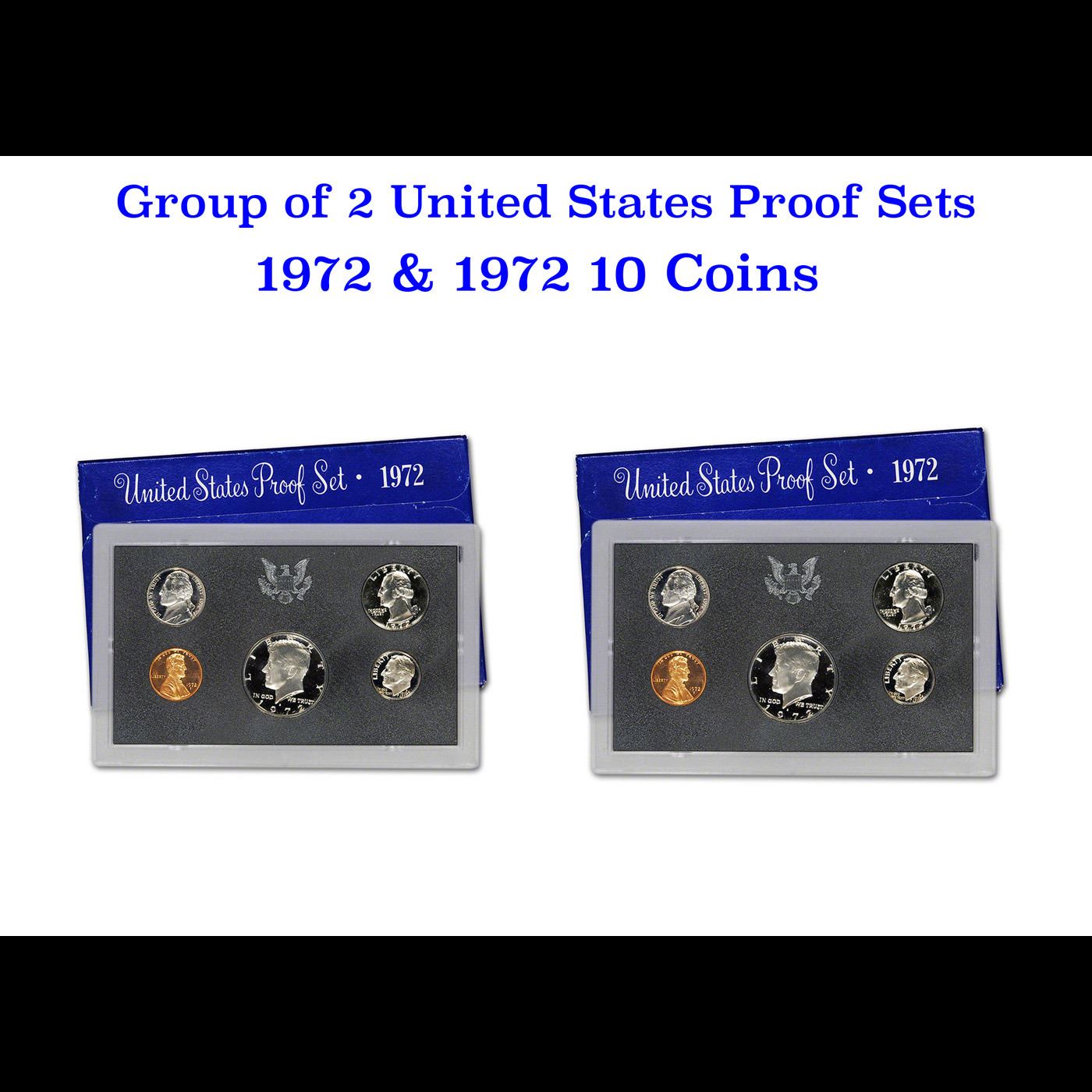 2x 1972 United States Mint Proof Set! A total of 10 Coins Inside, 5 each!
