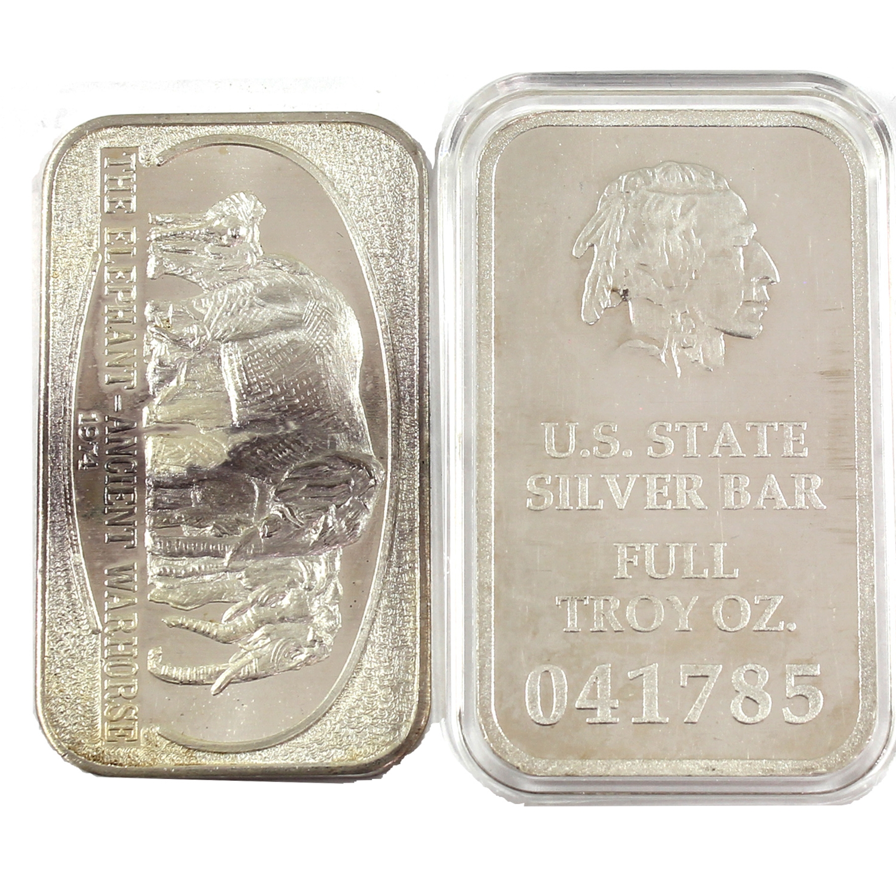 INCLUDES: 1974 United States Silver Corporation "The Elephant-Ancient Warhorse", & Federated Mint US State Silver Bar-USA Edition SN: 041785/001776 (As included on all issues from this series). 2pcs.