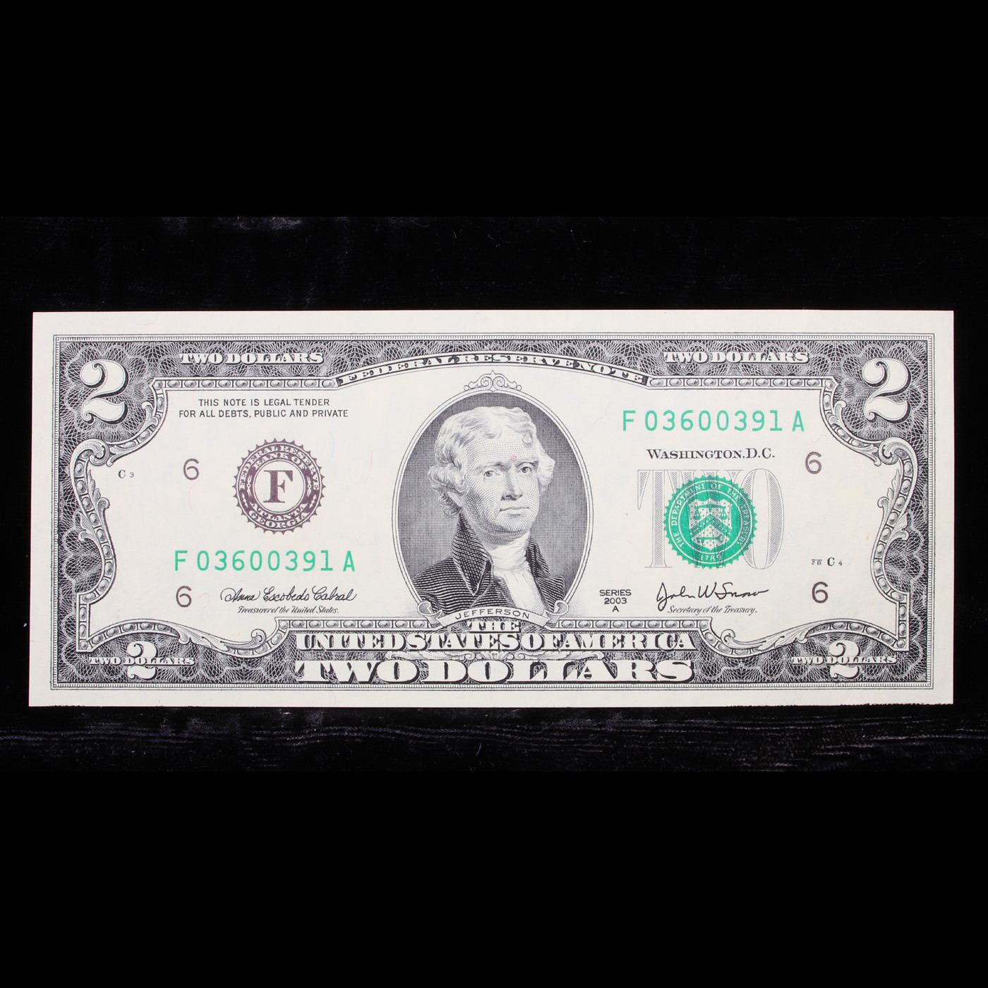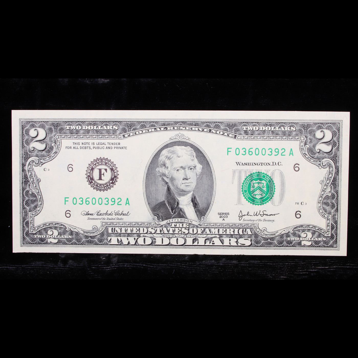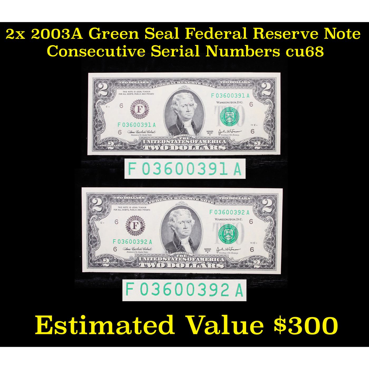2x 2003A Green Seal Federal Reserve Note Consecutive Serial Numbers Grades Gem++ CU.