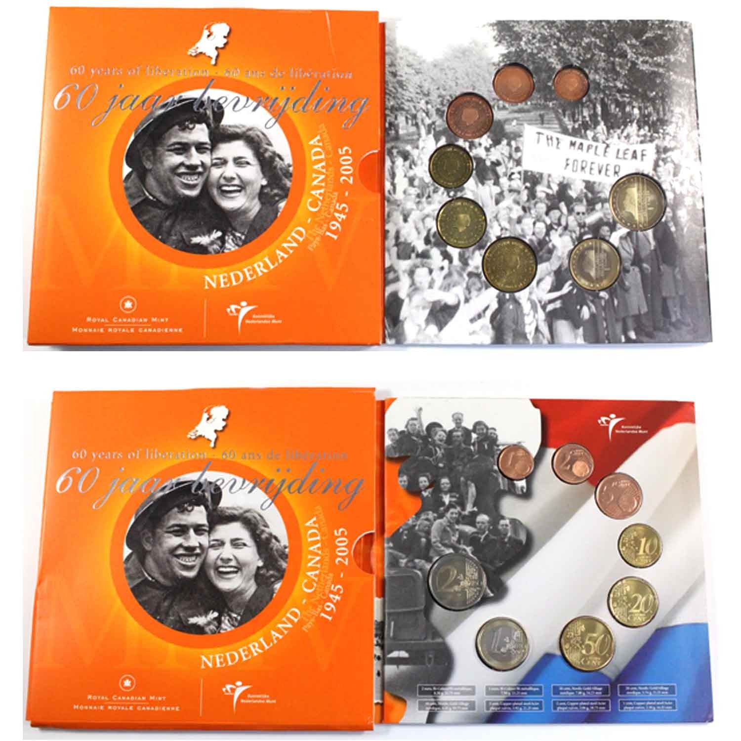 2x 2005 Canada 60th Anniversary of the Liberation of the Netherlands Sterling Silver 25-cent and BU Euro Set. 2pcs