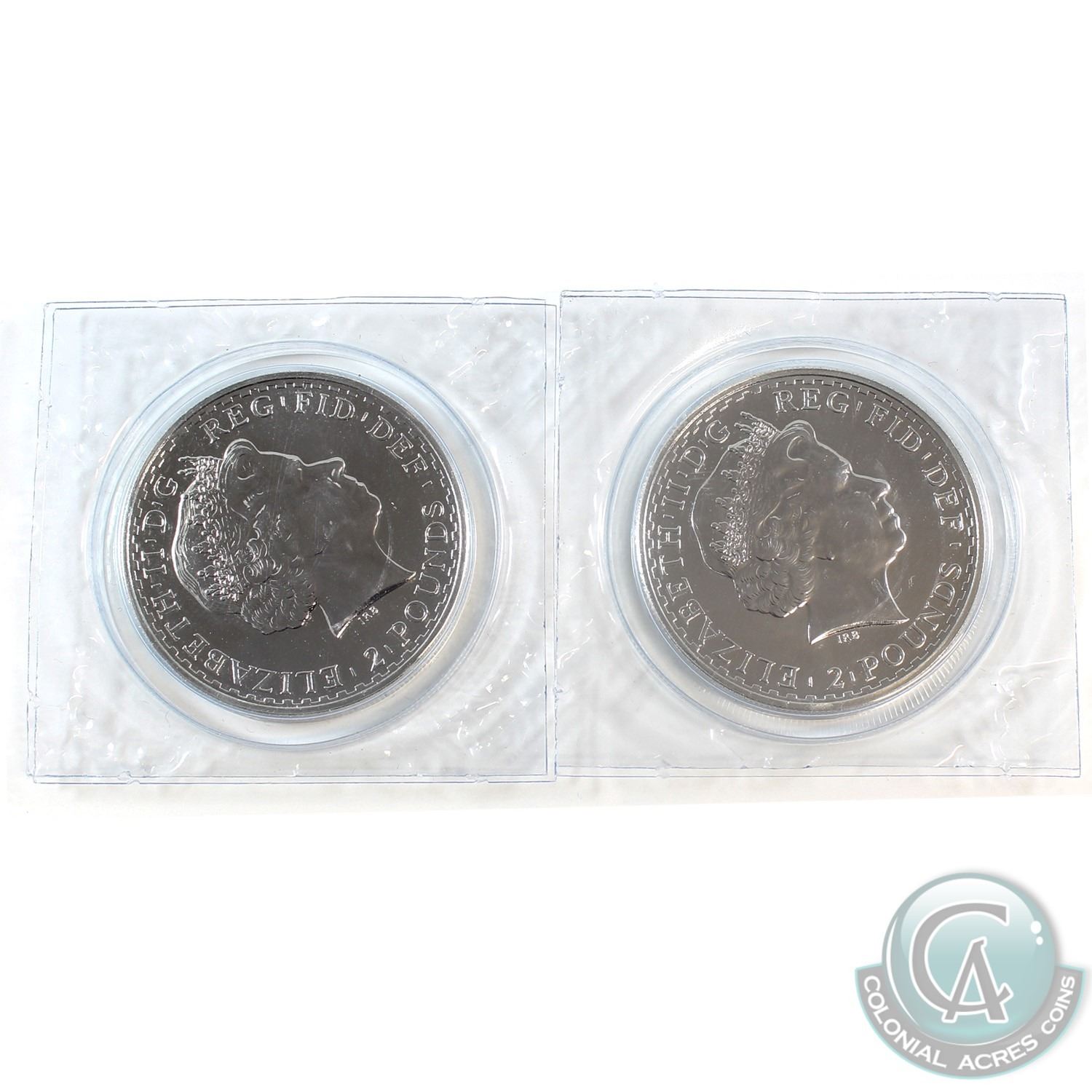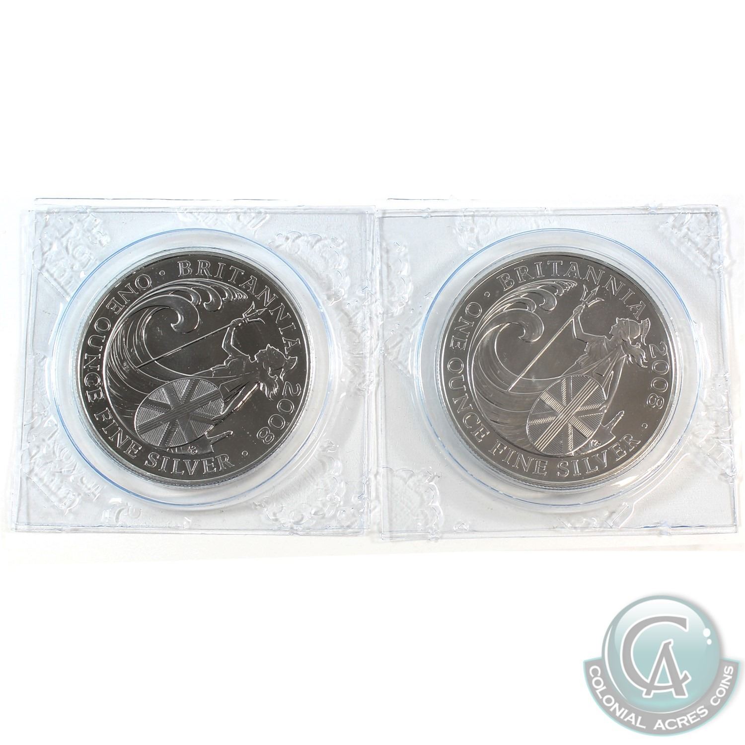 2x 2008 Great Britain 1oz Fine Silver Britannia's in Sealed Plastic. (TAX Exempt)