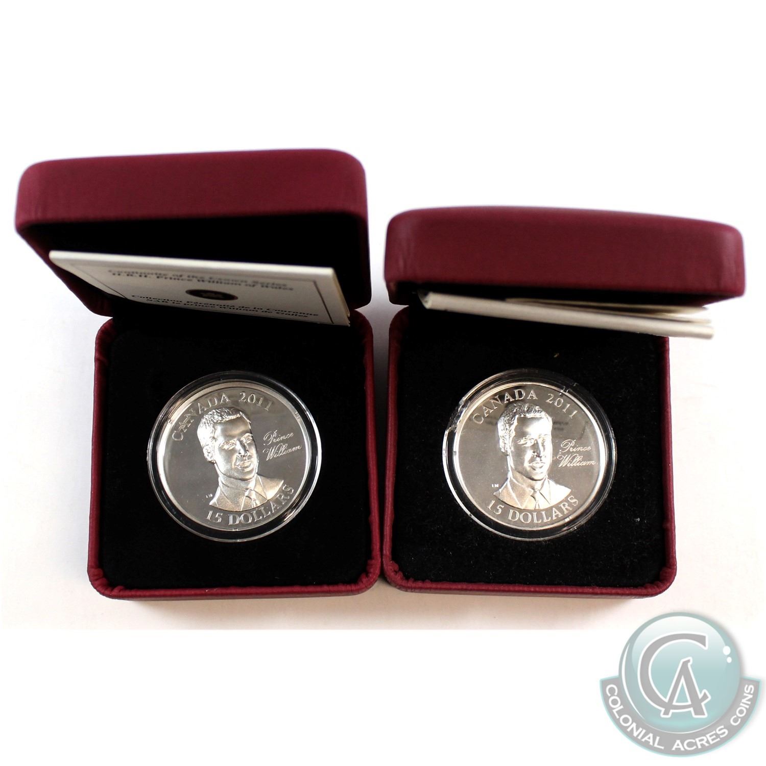 2x 2011 Canada $15 Ultra High Relief Silver Coin - Prince William. Coins come encapsulated with display box. One of the capsule is cracked. 2pcs