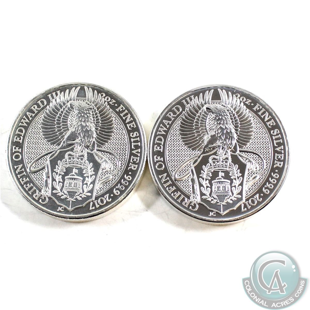 2x 2017 Great Britain 2 oz. Silver Queen's Beasts - The Griffin (TAX Exempt) - Toned