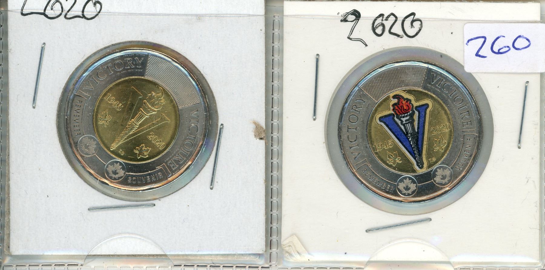 2x 2020 Canadian Victory toonies - colored and uncolored