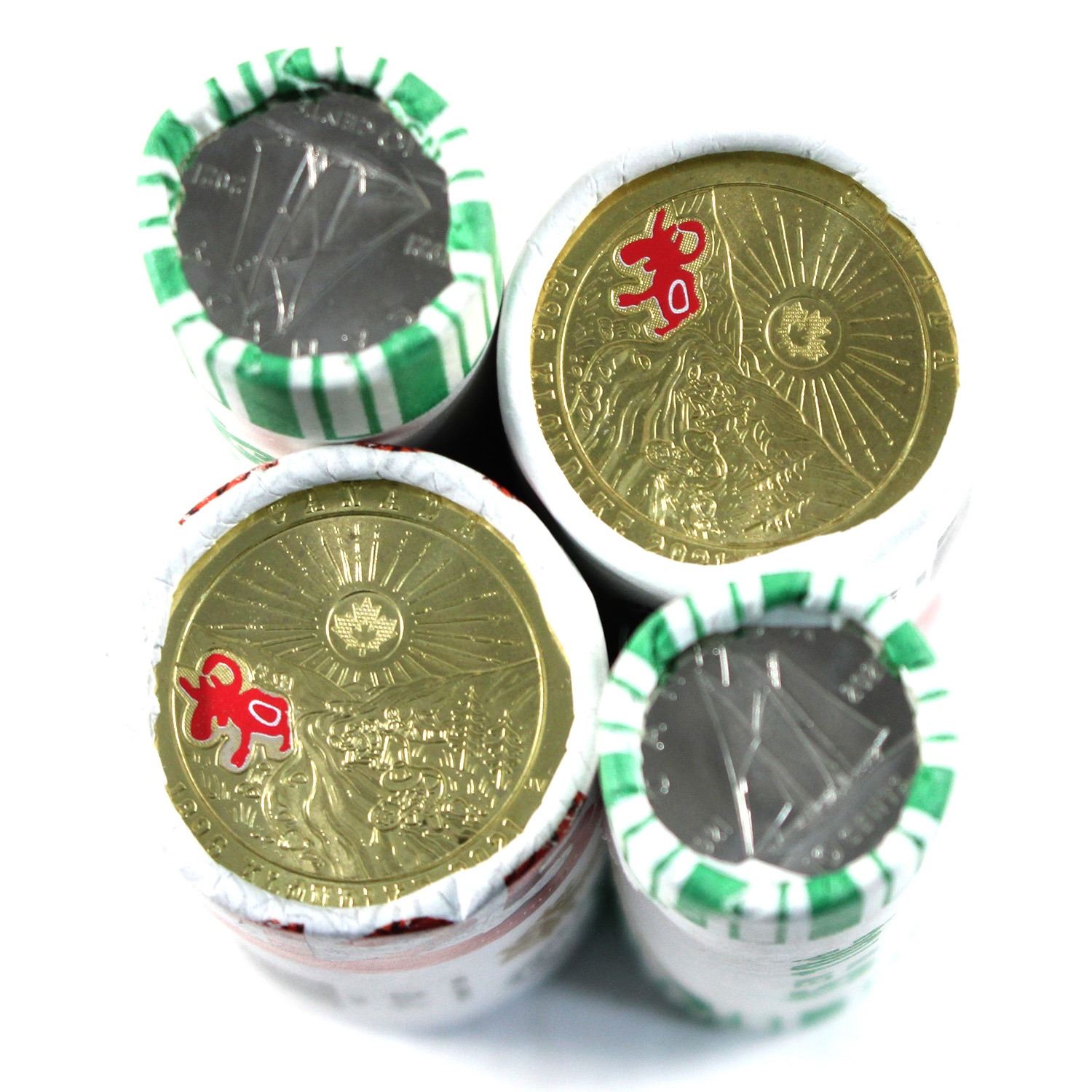 2x 2021 $1 Coloured 125th Ann. Klondike Gold Rush Special Wrap & 2x 2021 10-cent Original Rolls. 4pcs