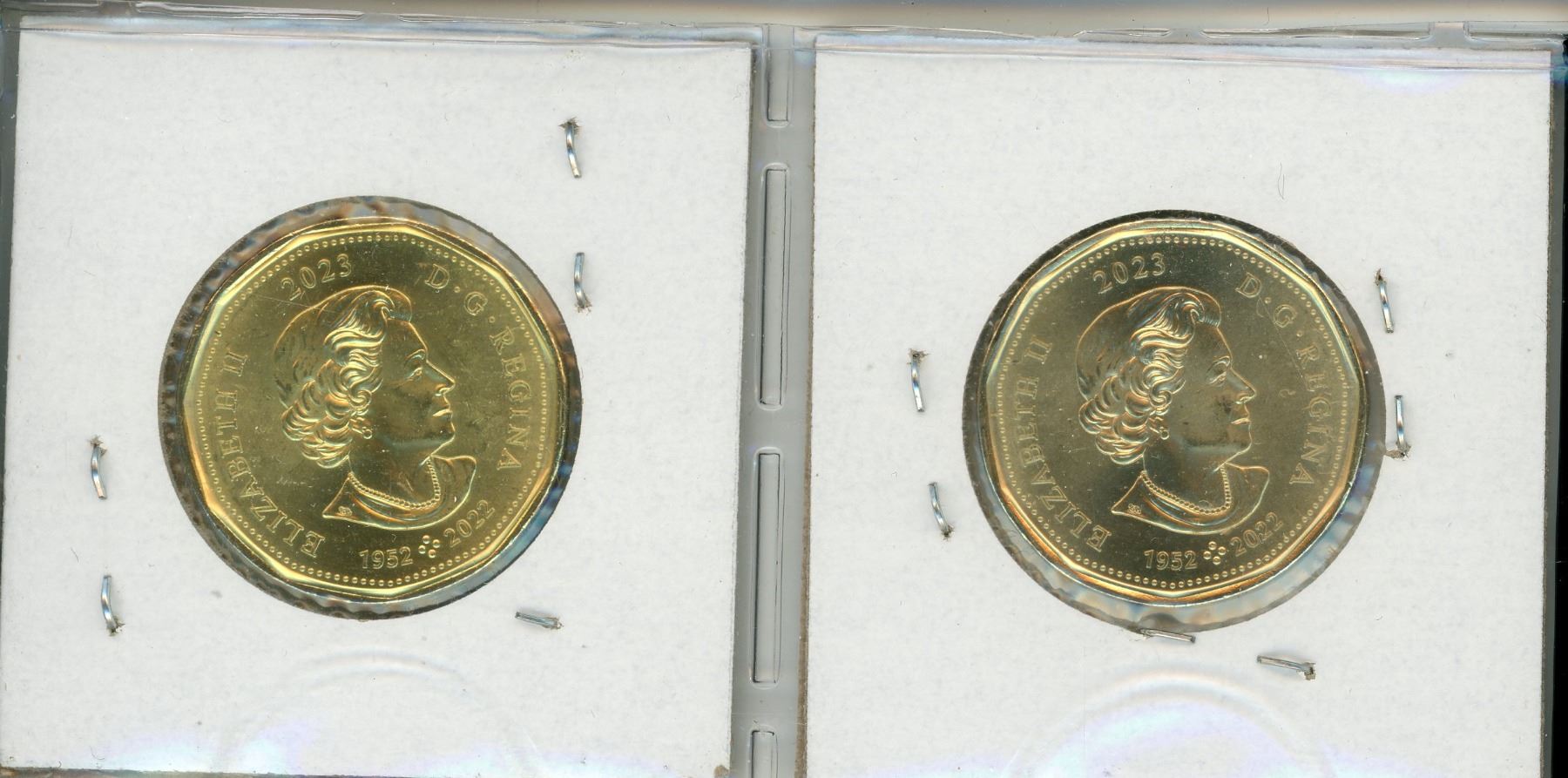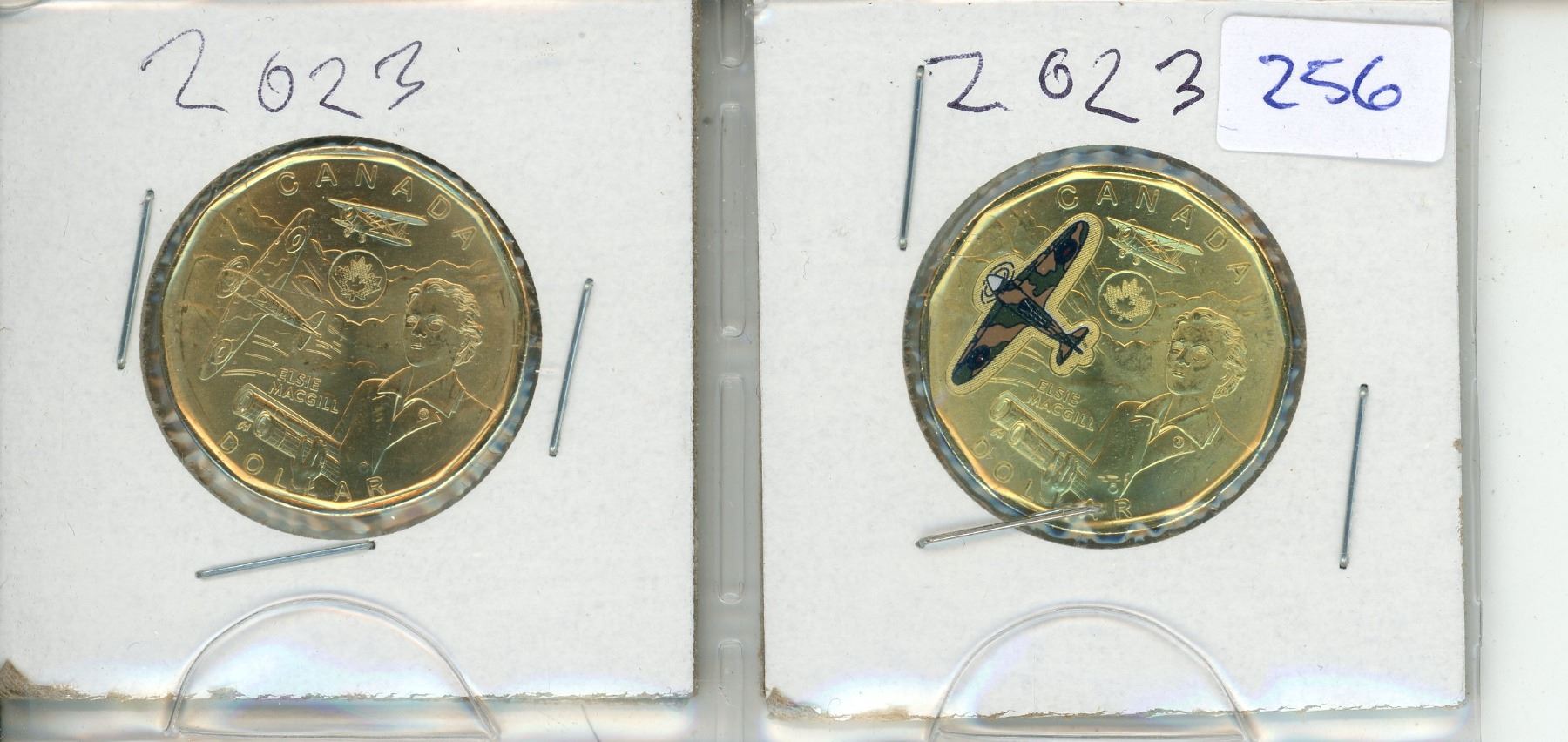 2x 2023 Canadian Elsie MacGill loonies - colored and uncolored