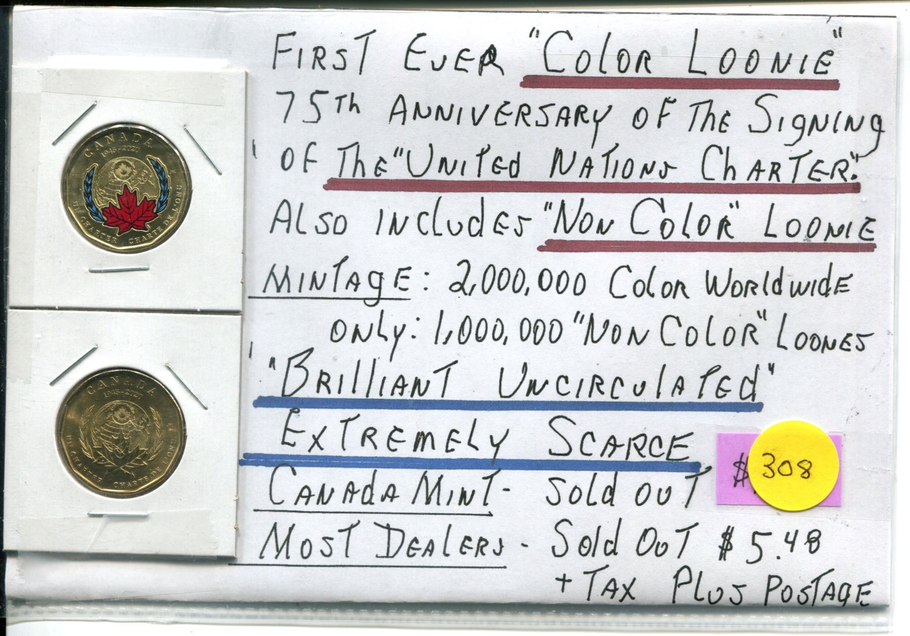 2x 75th Anniversary Canadian Loonies (Colour and Non-Colour)