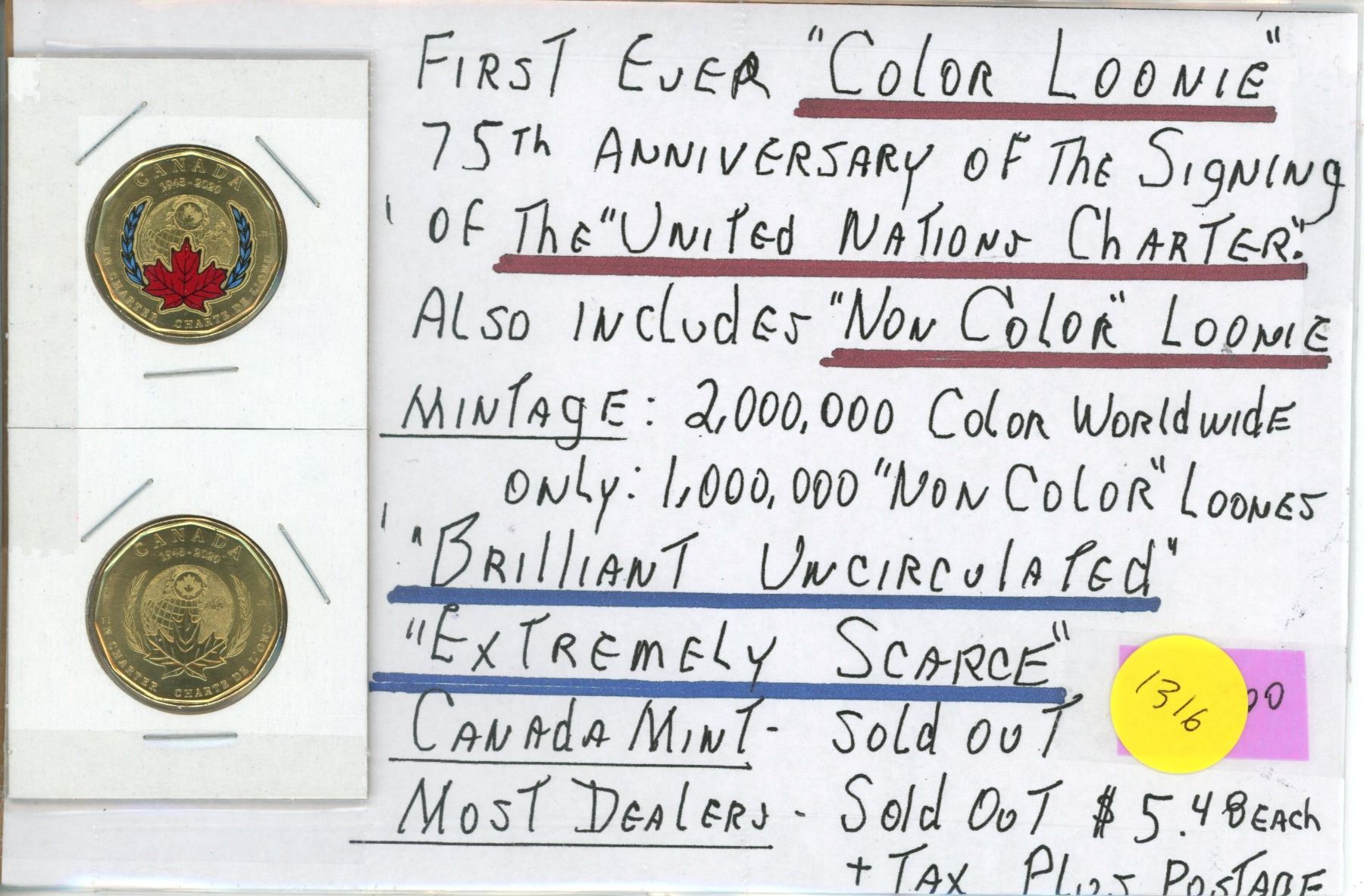 2x 75th Anniversary of the Signing of the UN Charter Loonies