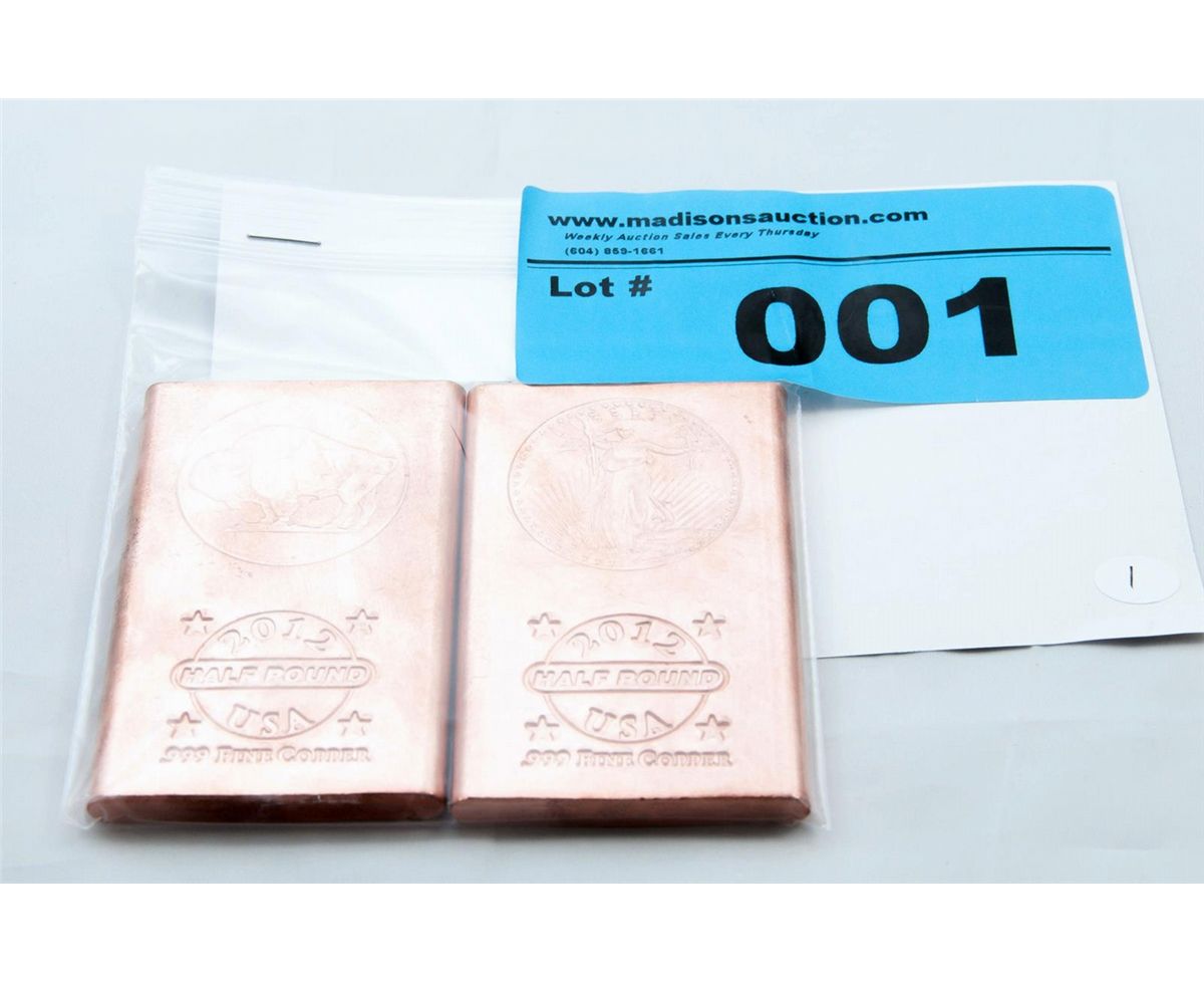 2x .999 Copper Bullion U.S bars