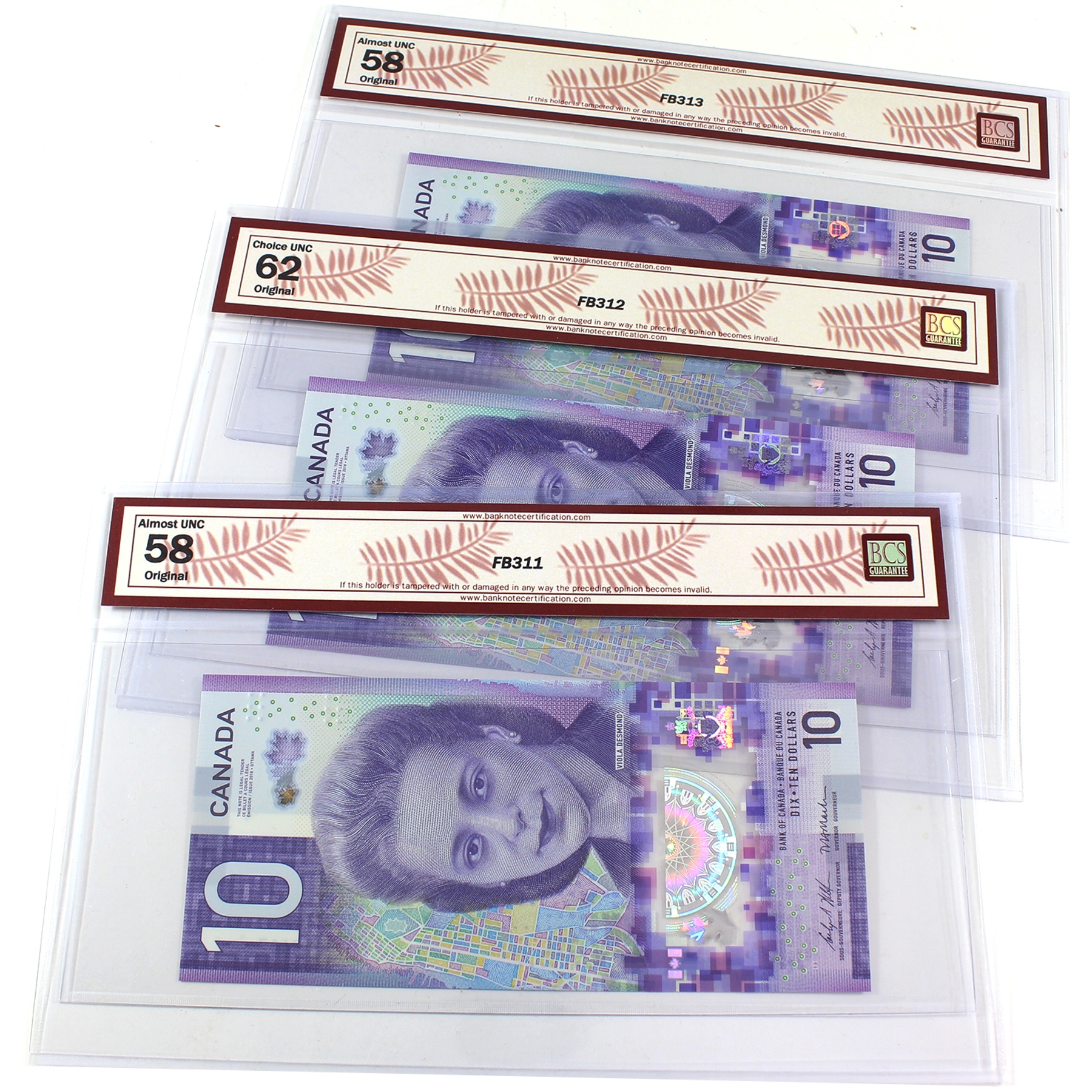 INCLUDES: 2x BC-77a Wilkins-Poloz AU58 SN: FTZ2038488 & CUNC62 SN: FTZ4720408 & BC-77b AU58 Wilkins-Macklem Changeover SN: FFE3359617. 3pcs