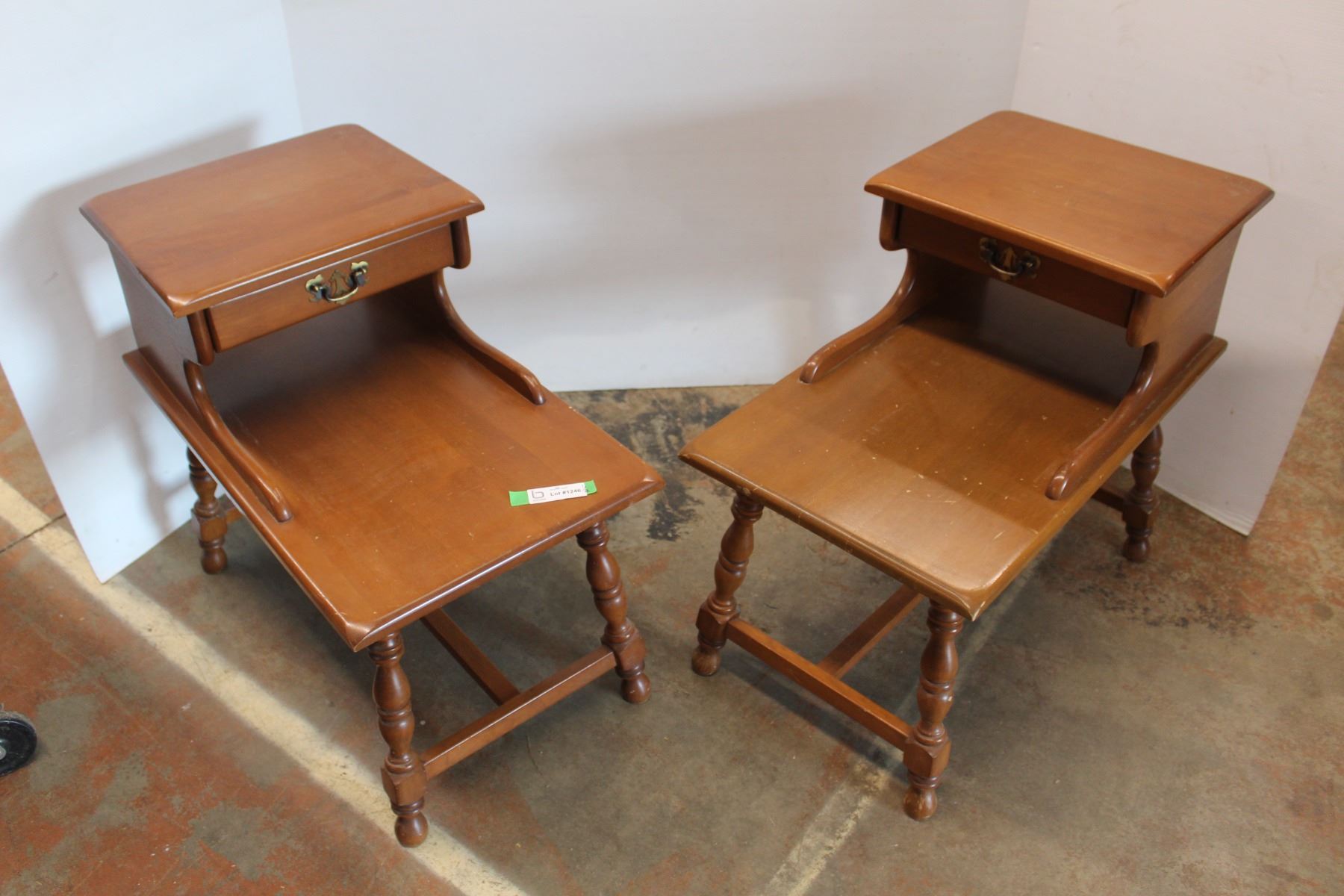 * (2x Bid Price) Pair of Krug Maple 2-Tier Wooden End Tables - 16" x 28" x 26"